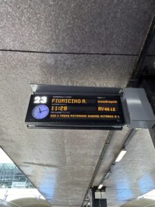 Así que hoy he llegado a Roma, al aeropuerto Fuimicino, sobre las diez de la mañana, y he mirado opciones de transfer hasta la ciudad (hay algo más de media hora). Resulta que hay un tren directo desde el mismo aeropuerto hasta una de las estaciones de tren más importantes, la estación Termini: el tren express Leonardo.