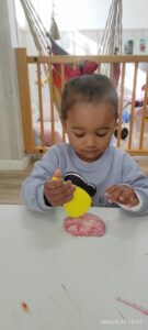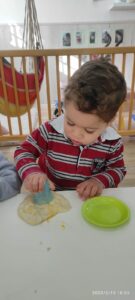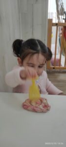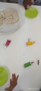 DESPUES TALLER DE EXPERIMENTACION, CON LA MASA QUE HICIMOS HEMOS COGIMO COLORANTE ALIMENTARIO Y HEMOS PINTADO LA MASA DE COLORES.