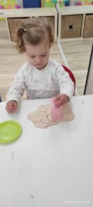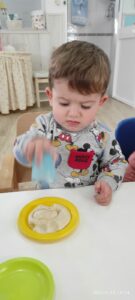 Y JUGAMOS CON LA MASA HACEMOS SERPIENTES, BOLLITOS CON EL MOLDES Y NOS LO PASAMOS GENIAL.