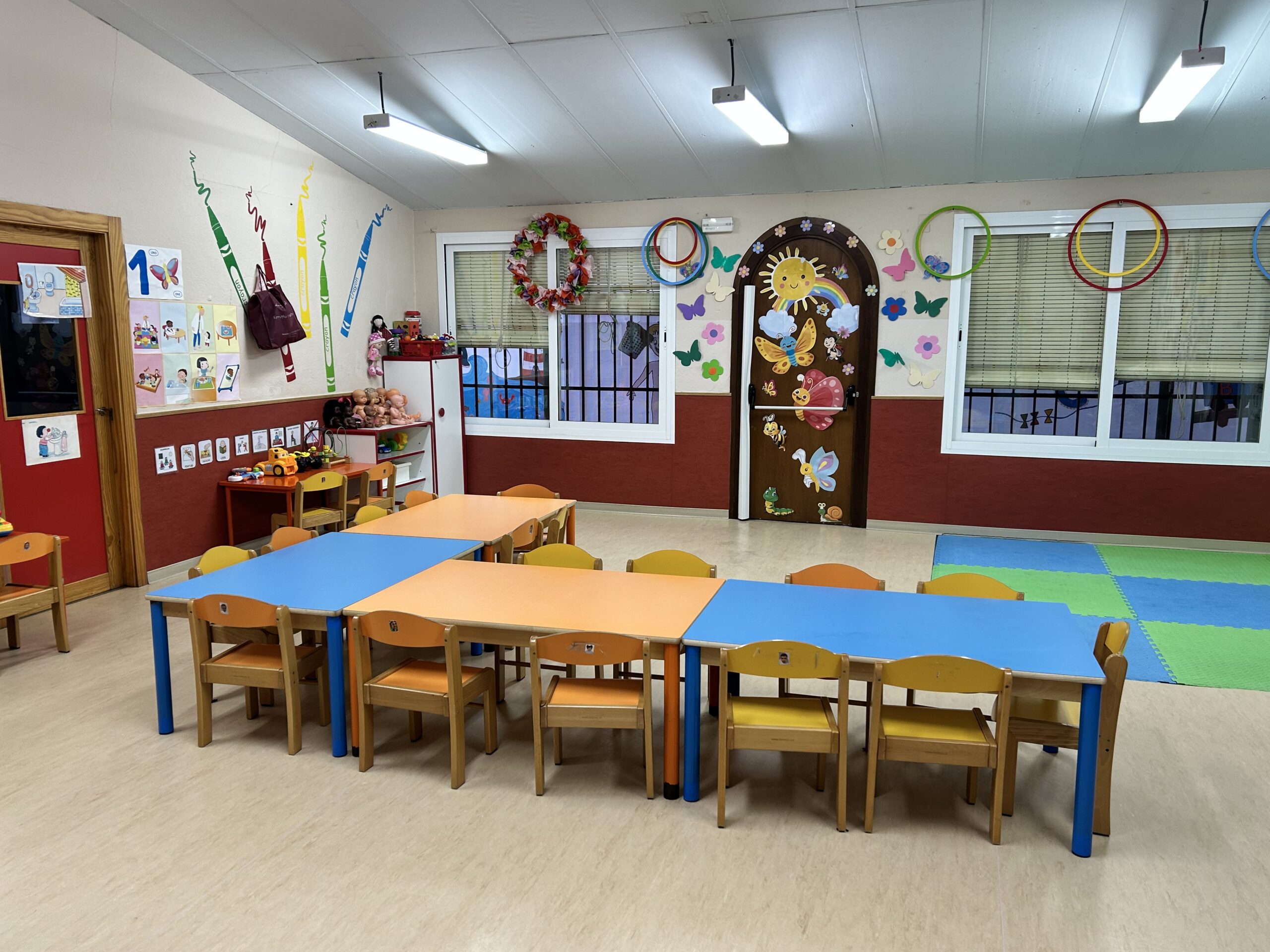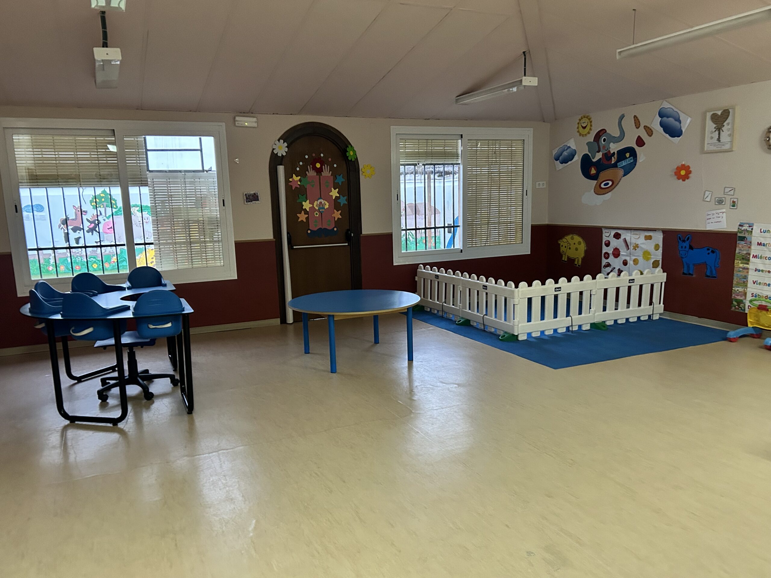 Además de las 3 clases adaptadas a las necesidades de cada edad, disponemos de despacho de dirección, aseo de adultos, cocina, zona de cambio, una de descanso, salón de usos múltiples con pizarra interactiva, aula sensorial, patio exterior.