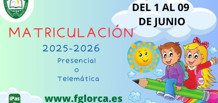 Matriculación para el curso 2025-2026. DEl 1 al 9 de junio