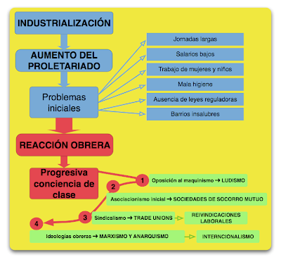 El següent esquema del professor Daniel Gómez ens servirà per tindre una visió de conjunt del tema. A continuació tenim la presentació sobre els canvis socials i les primeres organitzacions obreres.