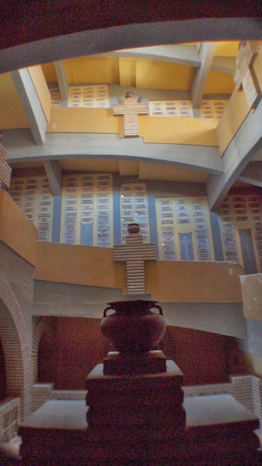 Aunque el proyecto inicial era mucho más monumental (la torre debía duplicar su tamaño actual), varias cosas llaman sin duda la atención: en primer lugar, su arquitectura de tipo fascista, incluido su diseño de fascio; también el hecho de que sea territorio italiano; y, finalmente, lo impresionante que resulta su interior, con unas rampas llenas de lápidas, algunas de ellas todavía con cartas de sus familiares.