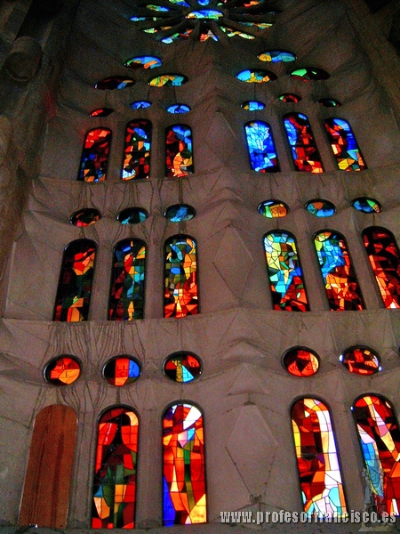 Vidriera. Láminas de vidrio ensambladas en un bastidor de madera de forma geométrica. Se usa en vanos y tiene un carácter decorativo. Su realización comprende varias fases: dibujo, corte de la pasta de vidrio y color por medio de la disolución de colorantes (óxidos metálicos en la pasta vitrea).->