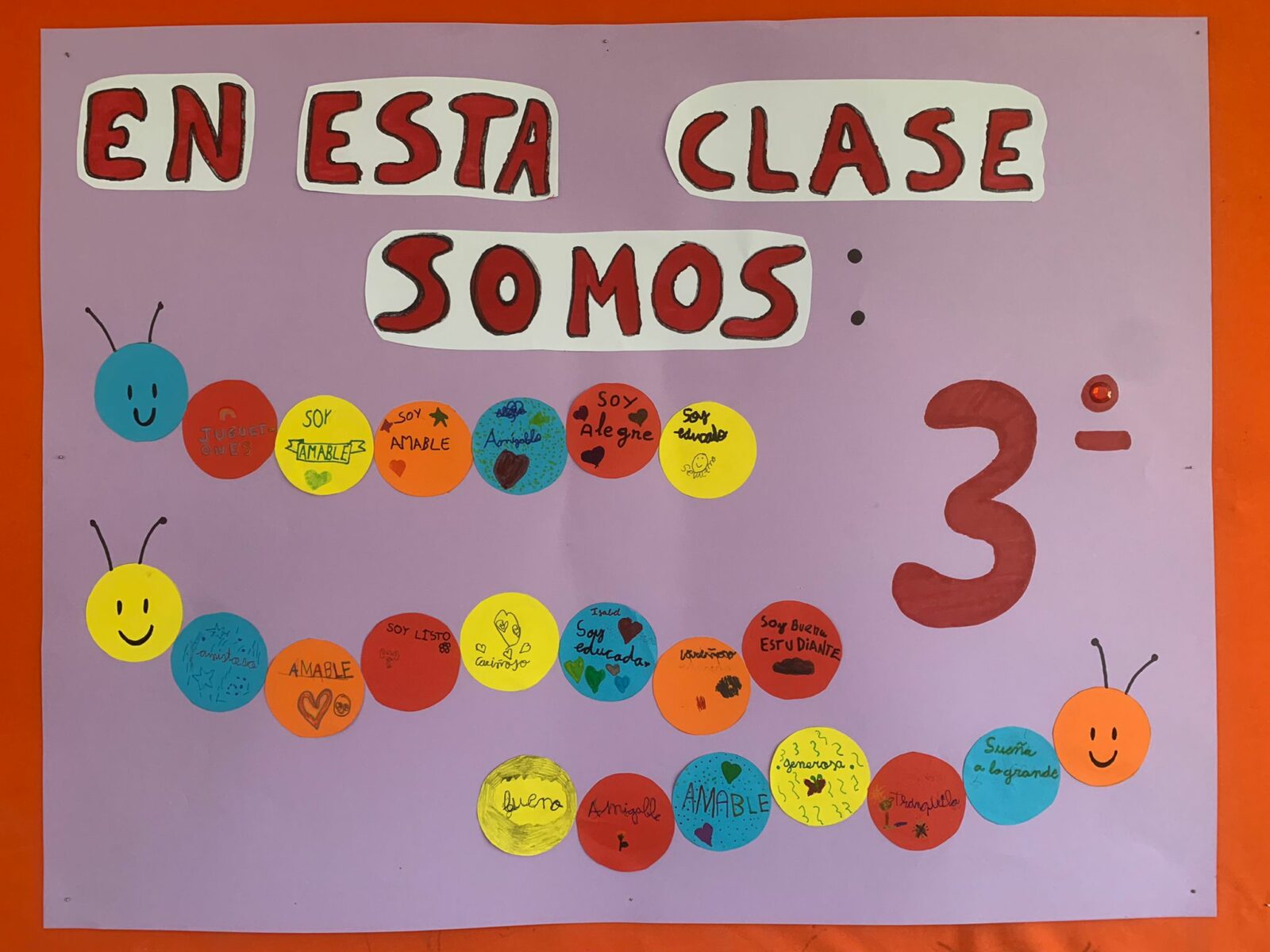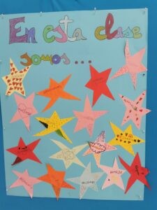 Cada niño y niña ha escrito en tarjetas con diferentes formas su cualidad positiva y con dichas tarjetas hemos construido un mural en clase para tenerlo a la vista todo el curso.