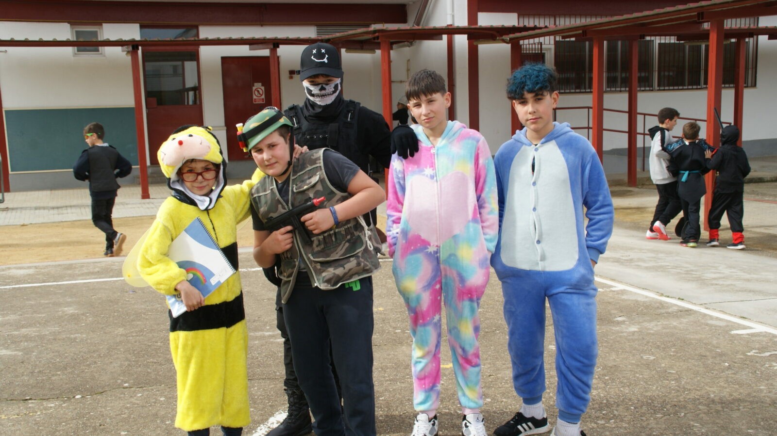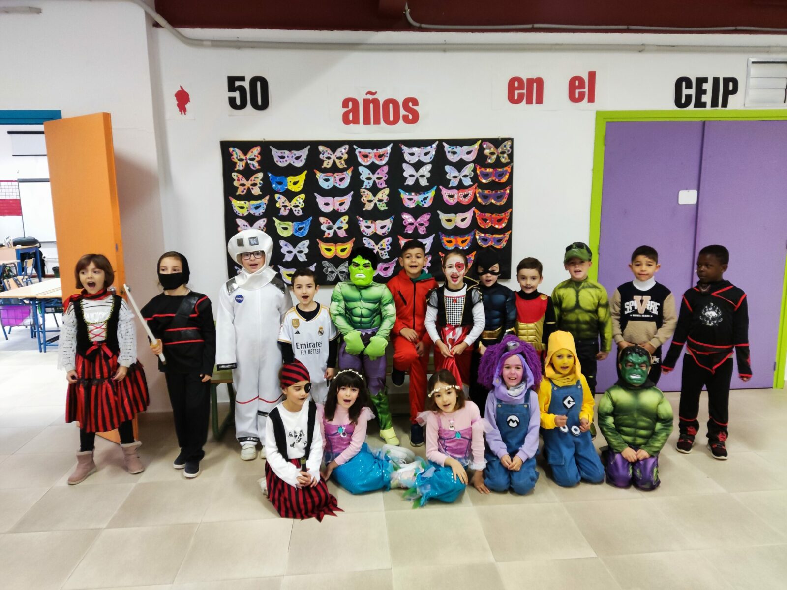Pequeños y grandes, maestros y maestras compartimos un estupendo día de sol de invierno: hicimos desfiles en nuestras clases y en el patio, en el que, como colofón, paseamos y bailamos al ritmo que nuestros locutores de Granca Radio marcaron desde su cabina.