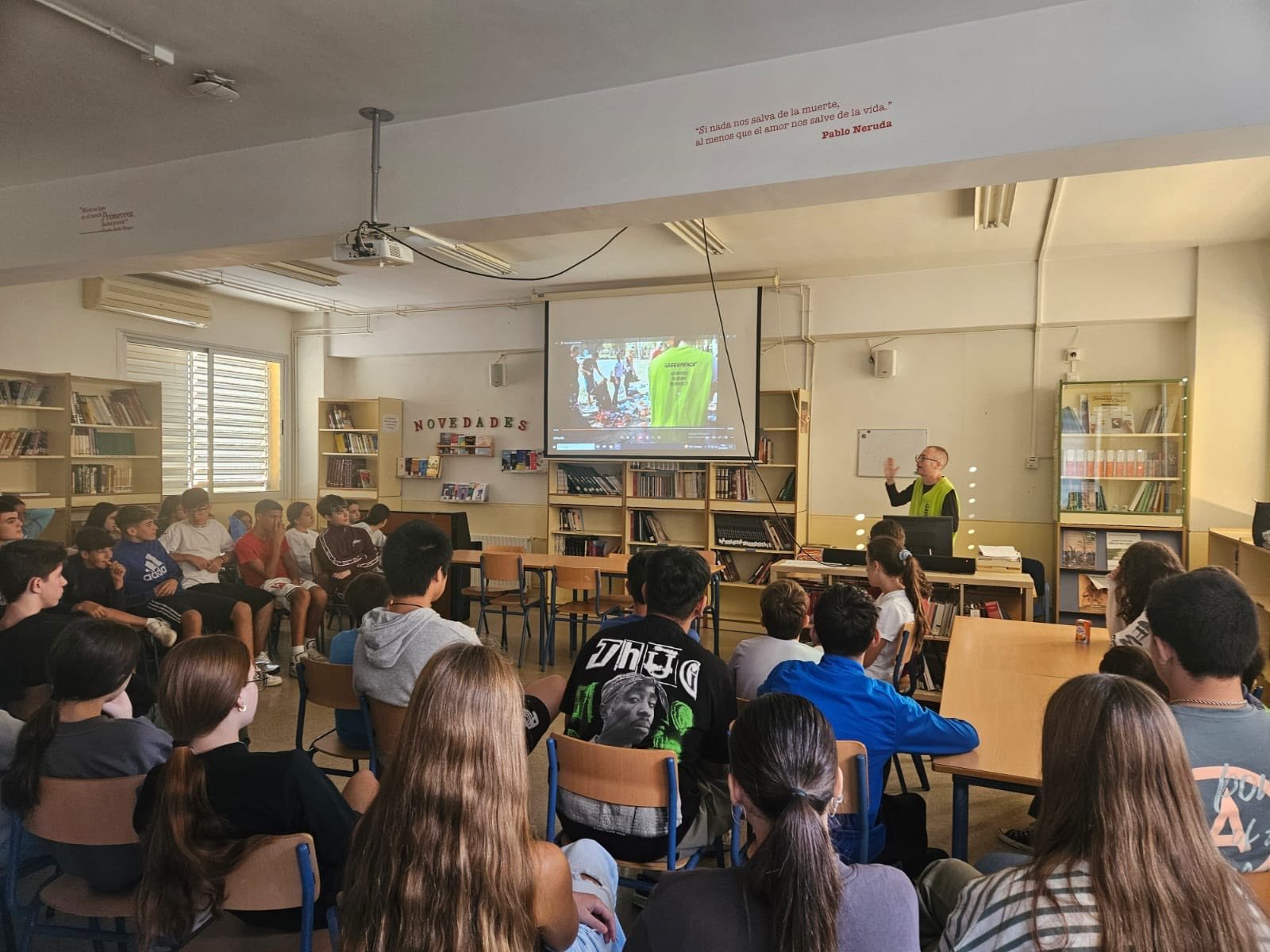 Entre las actividades organizadas hemos tenido la suerte de contar con la visita de un voluntario de la ONG Greenpeace. Nos ha acercado a las causas principales como la quema de combustibles fósiles, la deforestación y el consumo excesivo; sus impactos, como el aumento de las temperaturas globales y como las acciones individuales y colectivas pueden combatirlo con el objetivo de tomar una necesaria conciencia en estos momentos en los que percibimos ese cambio de nuestro clima.