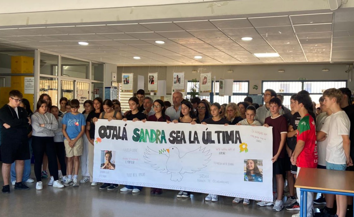 Representación de todos los sectores de la Comunidad Educativa del IES Antonio Álvarez López de la iniciativa de hoy en memoria de Sandra Peña, en apoyo a sus familiares y amigos, y como inicio de una reflexión en todas las aulas. Enhorabuena al CEIP Duques de Alba y al CEIP Doña Rosa Fernández. Y gracias al Excmo. Ayuntamiento de Gelves por sumarse.