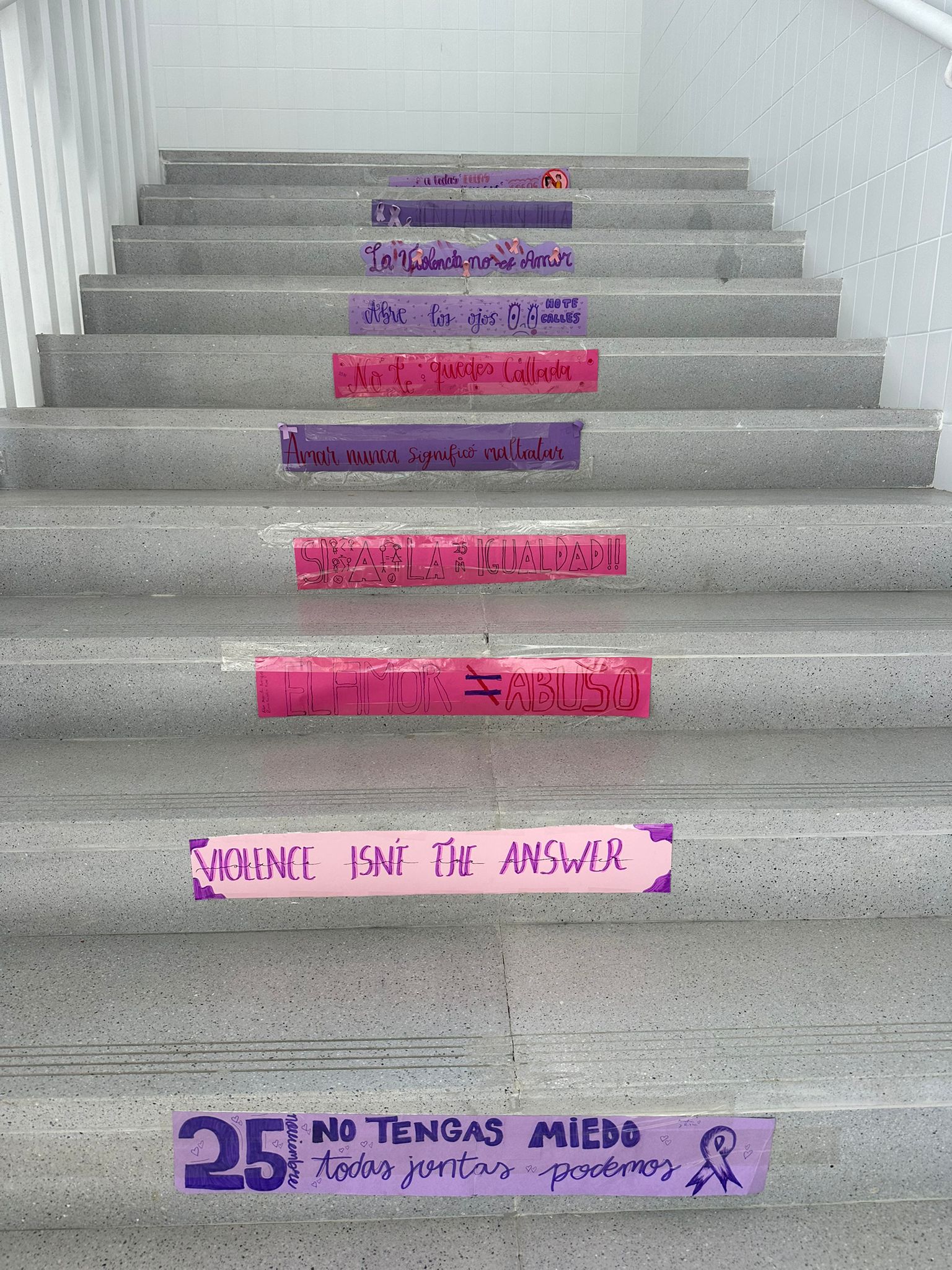 Hoy, el alumnado de La Azucarera se unió para conmemorar el #25N con la lectura de un manifiesto, mensajes llenos de significado decorando las escaleras y un hermoso mural de globos. 💜