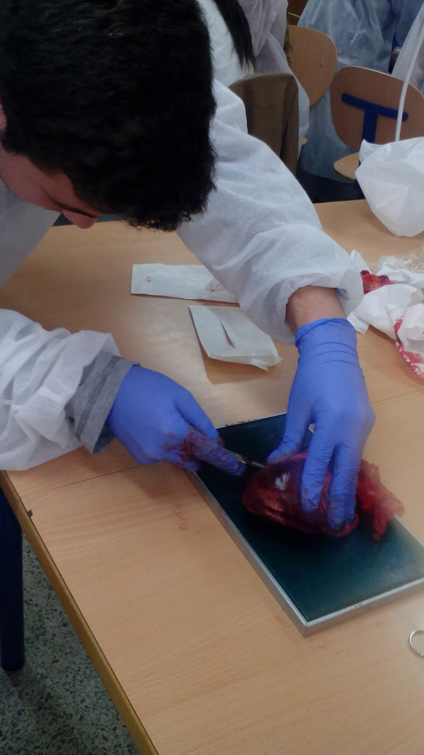 Disección de corazón y riñón de cerdo realizado por los alumnos de 1ª de Bachillerato de Ciencias correspondiente a la unidad » El procesamiento de los alimentos en los animales».