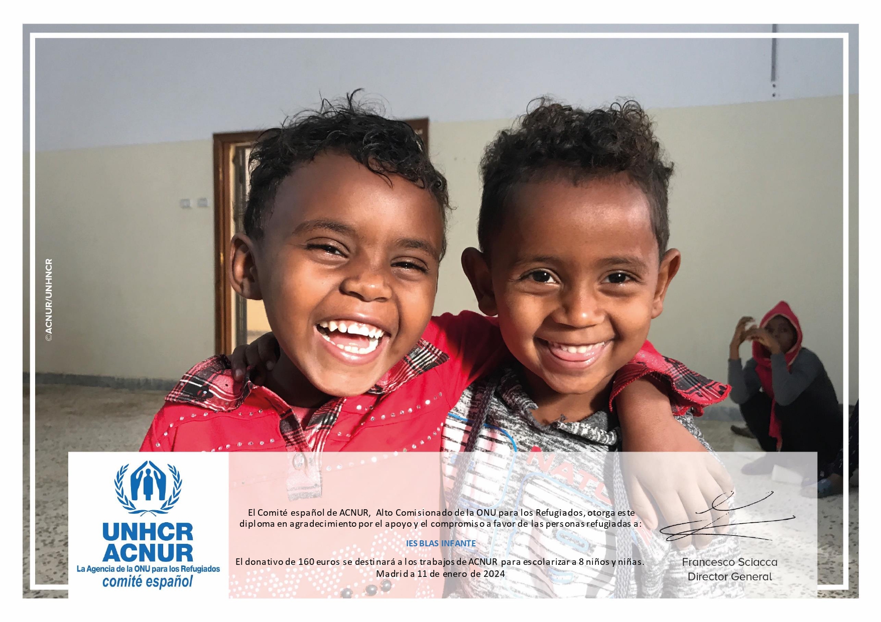 Nuestro IES recibe el Diploma de ACNUR por la donación realizada. Gracias por vuestra colaboración en el Mercadillo Solidario!