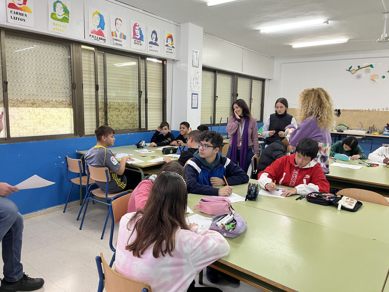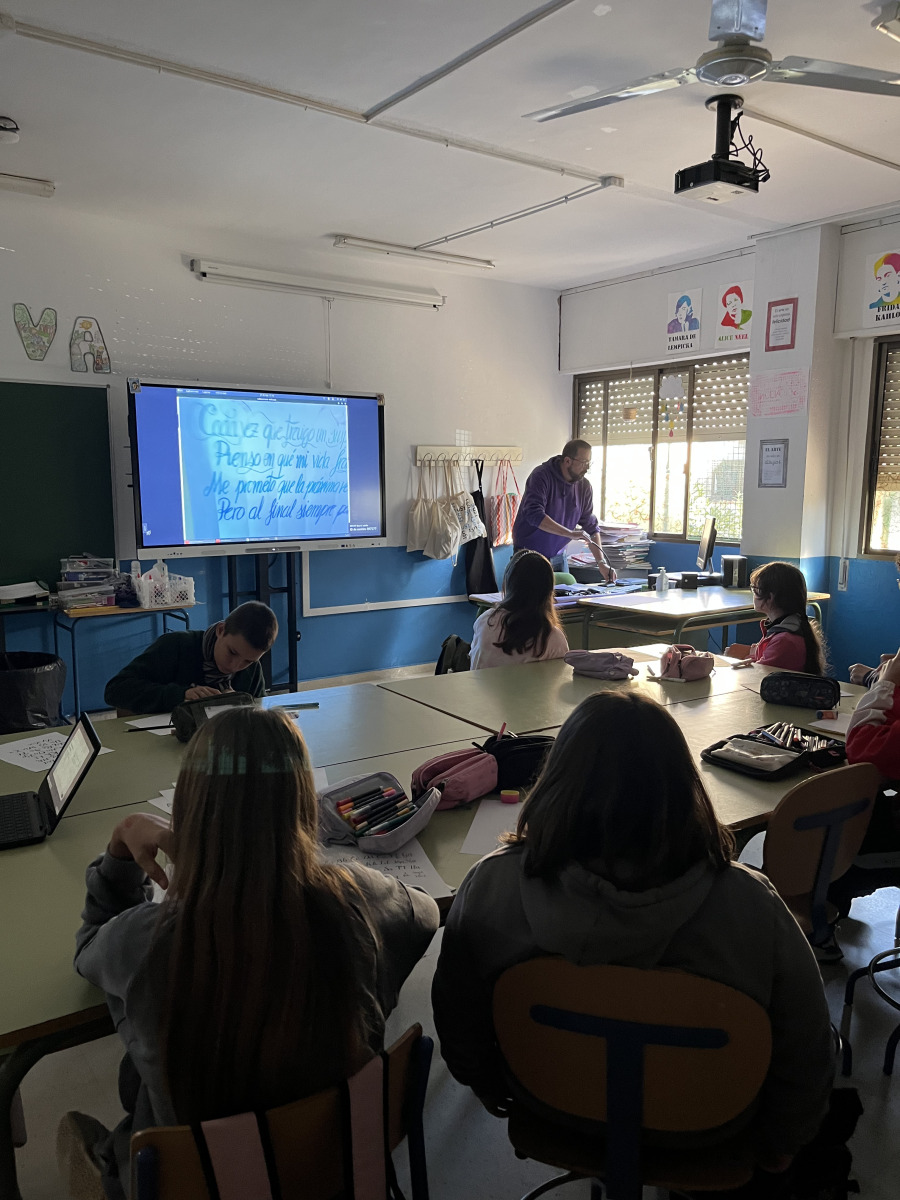 En la jornada del 25N el alumnado del IES Blas Infante ha elaborado de manera conjunta una canción contra la violencia de género. Esto ha sido posible gracias al taller que el profesor de Música, Fernando Camas, ha impartido al alumnado de 2º a 4º de ESO. Posteriormente, el alumnado de 1º de ESO ha plasmado las estrofas seleccionadas en un mural que se ha colgado en el vestíbulo del IES. El profesor de Plástica, Manuel Tirado, ha enseñado al alumnado a hacer Lettering para que el resultado fuese óptimo.