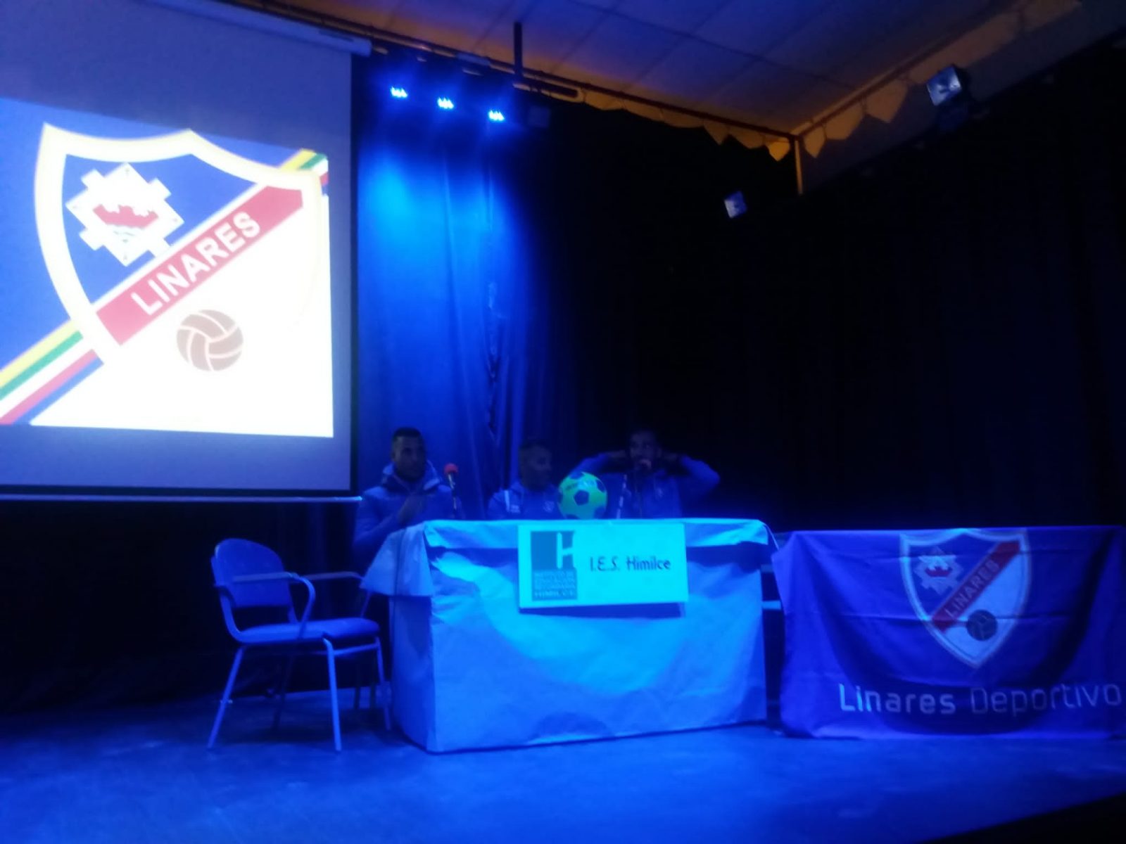 Hoy hemos podido disfrutar todos con la Charla-Coloquio sobre “Deporte, Valores, Esfuerzo y Superación” celebrada en el Salón de Actos de nuestro centro, y que ha contado con la participación del Linares Deportivo FC, representados por los jugadores Josema (Capitán y Defensa) y Chendo (Delantero), Juan Arsenal (Entrenador) y Javier (Directivo), a los que desde aquí queremos agradecer su presencia y el tiempo que nos han dedicado.