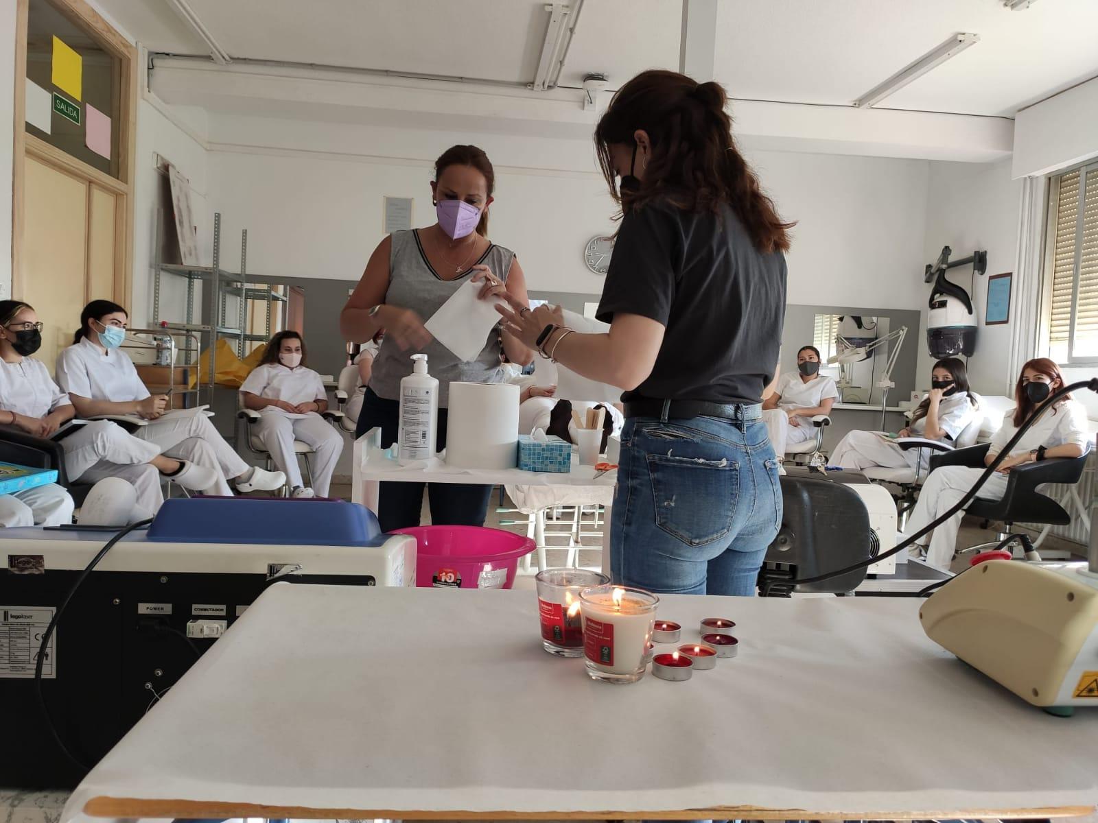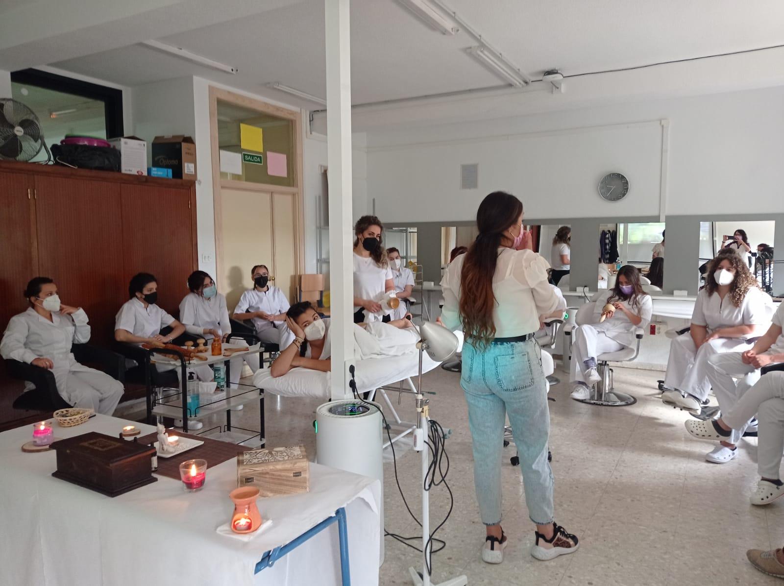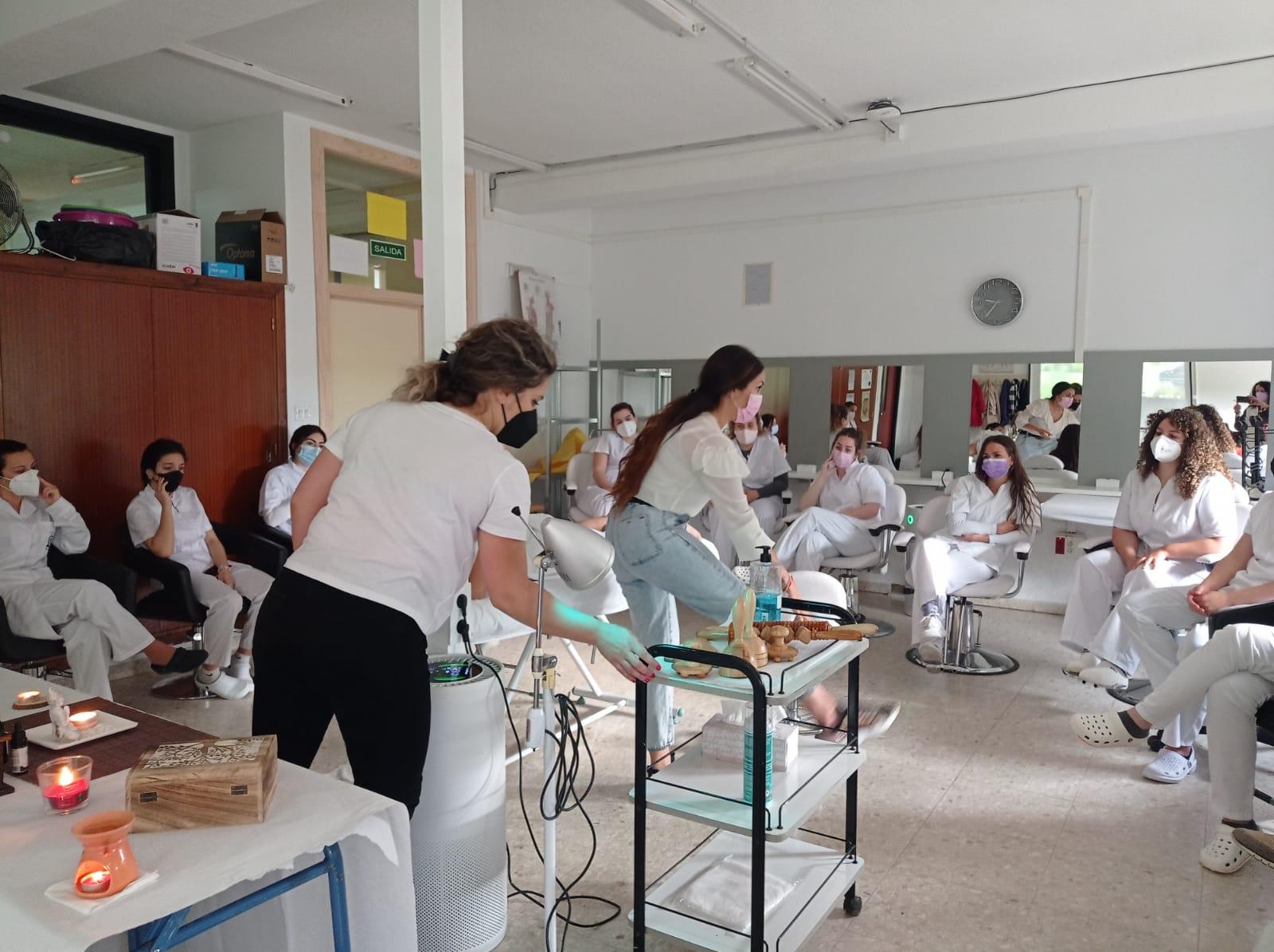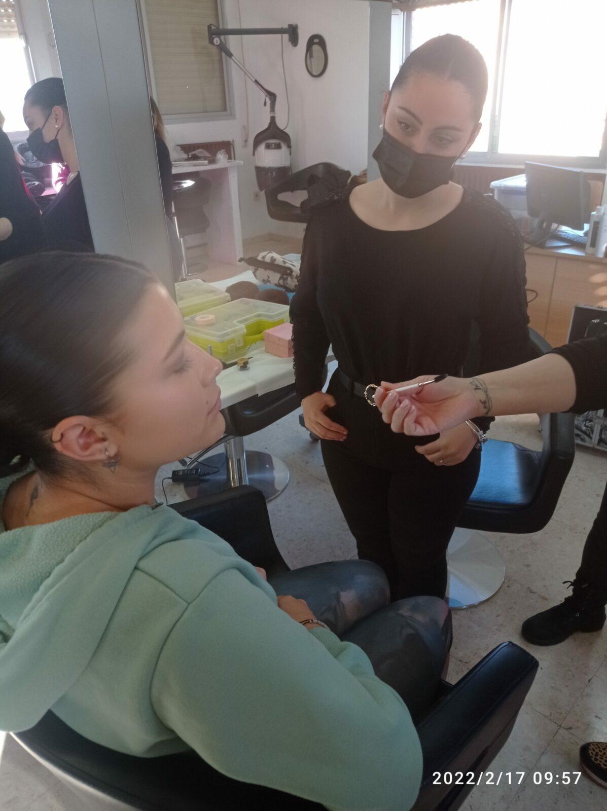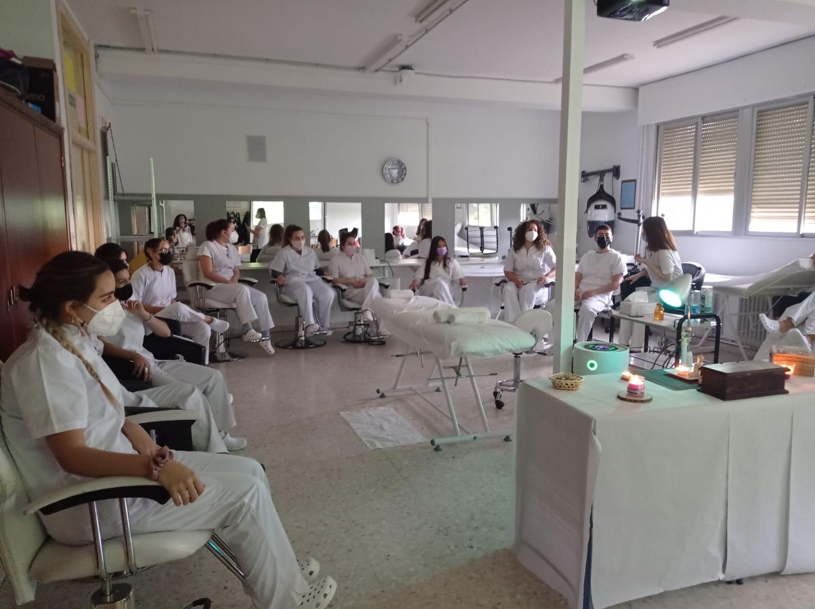 Por parte de una gran profesional del mundo de la estética Liudmila Syipi, junto a Mª del Carmen Sánchez y alumnos de 2º EIB.