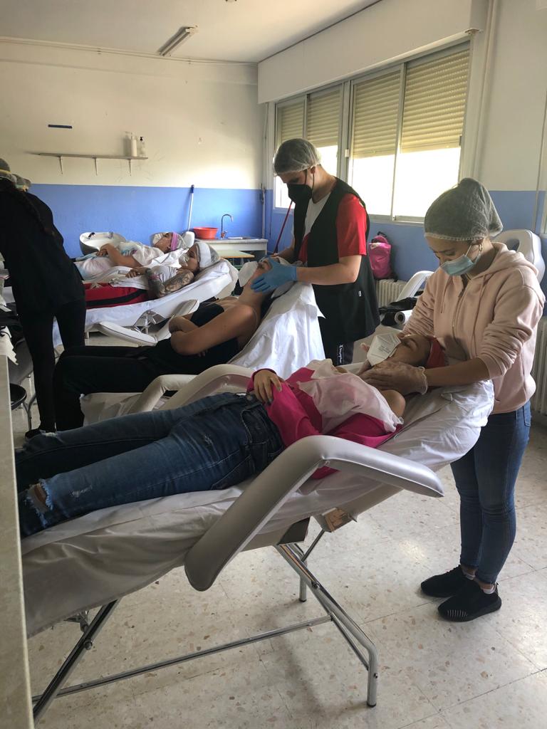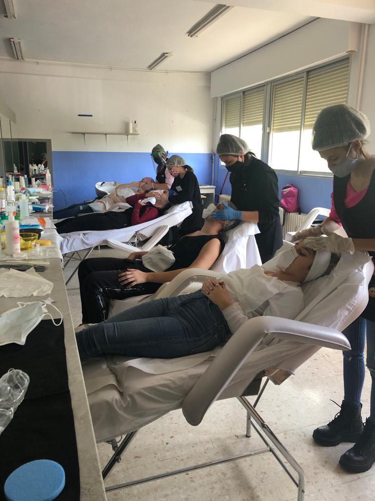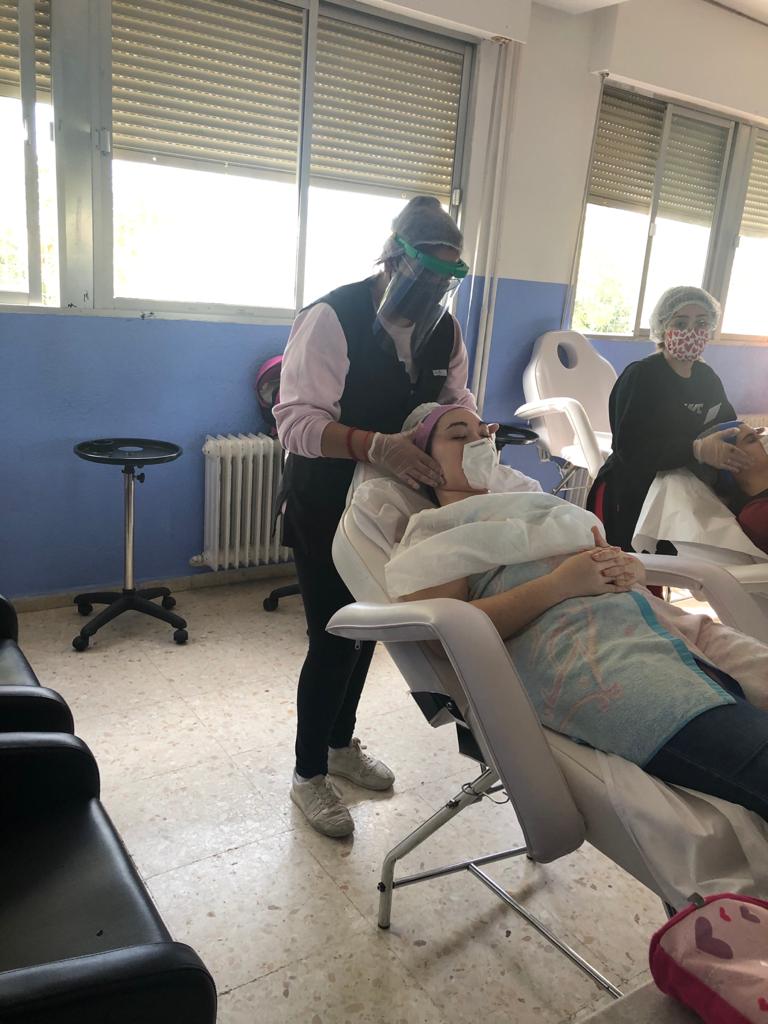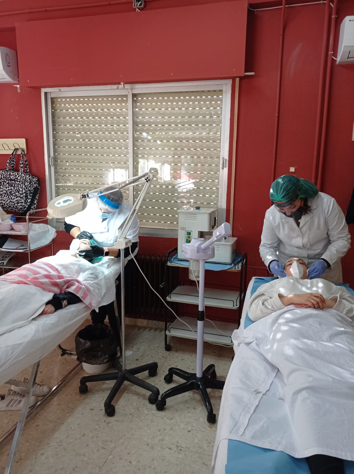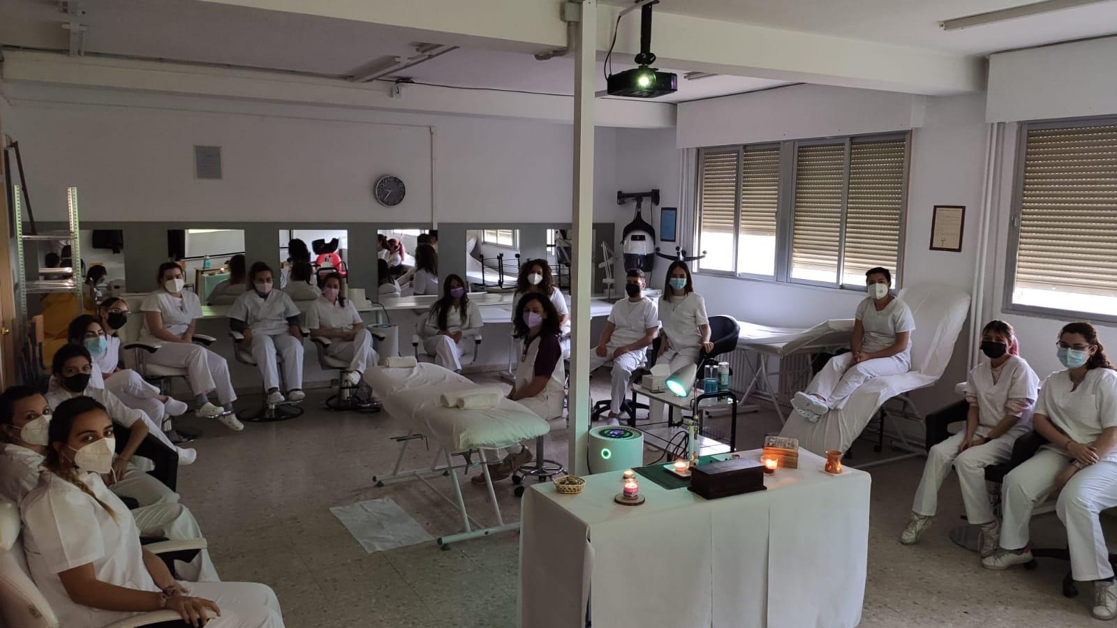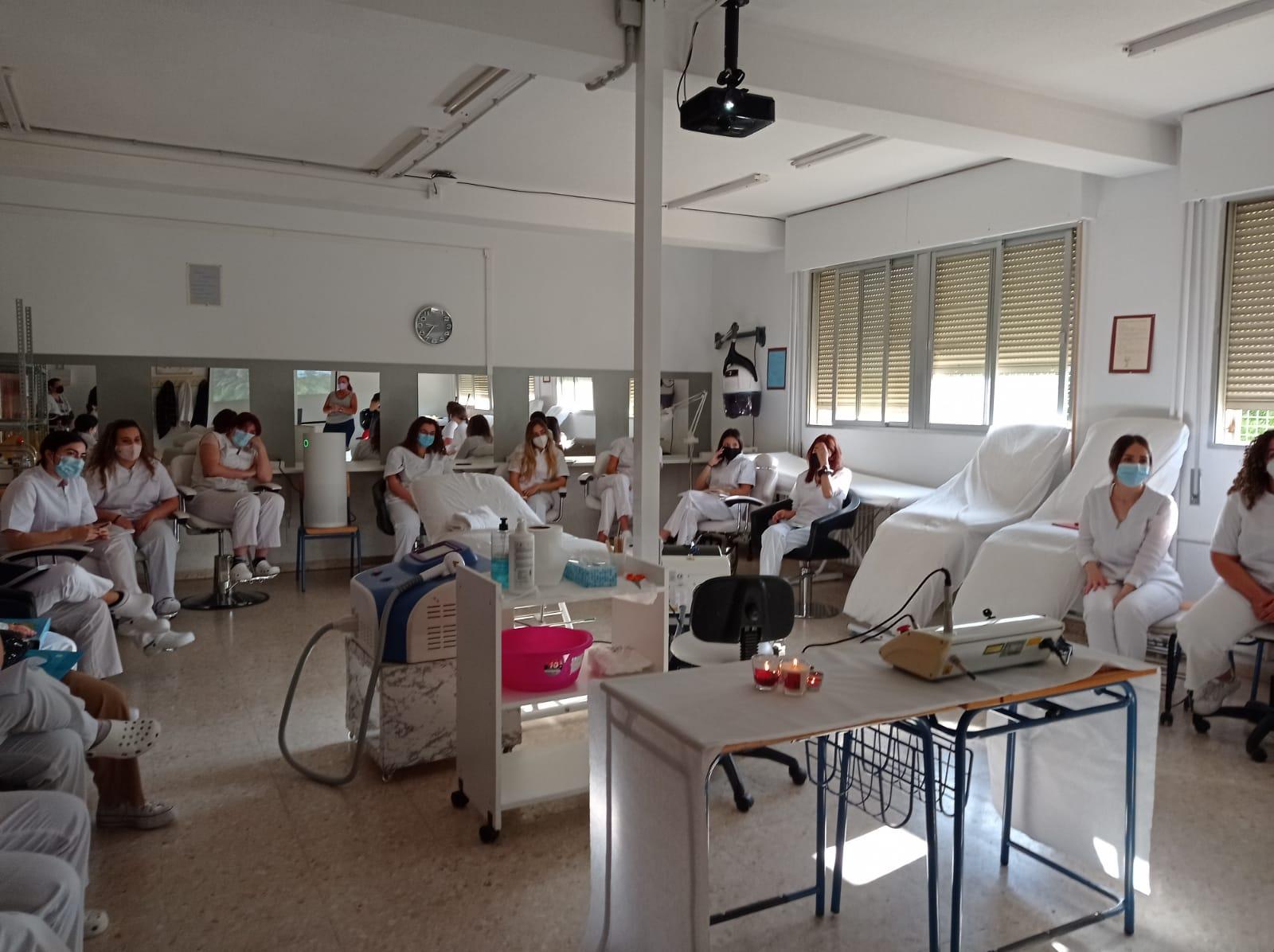 Por parte de una gran profesional del mundo de la estética Liudmila Syipi, junto a Mª del Carmen Sánchez y alumnos de 2º EIB.