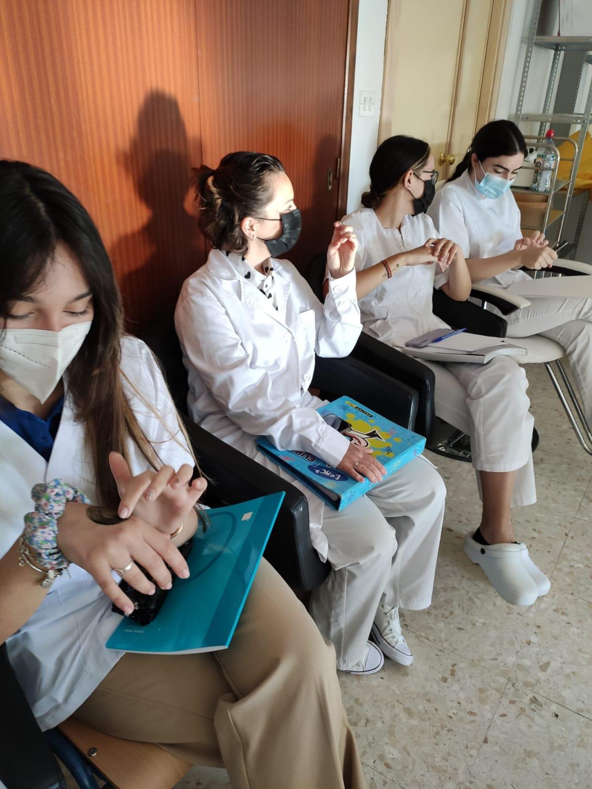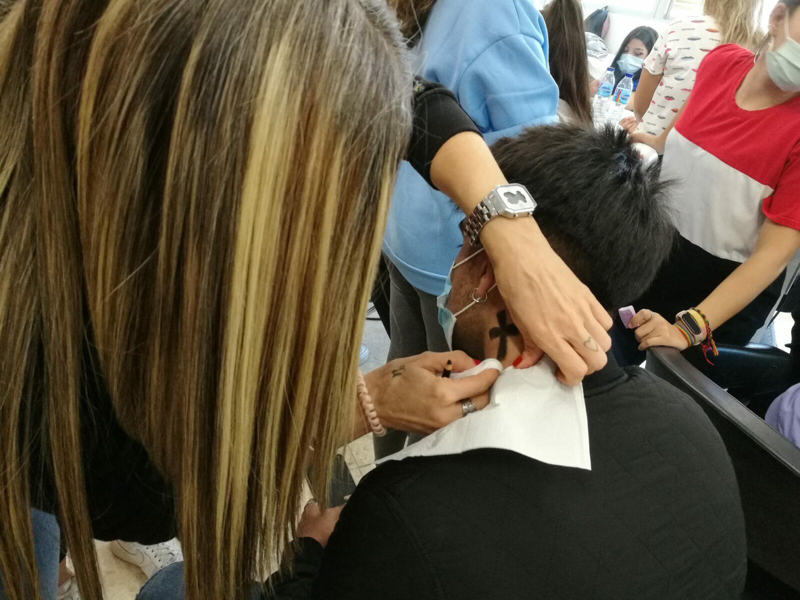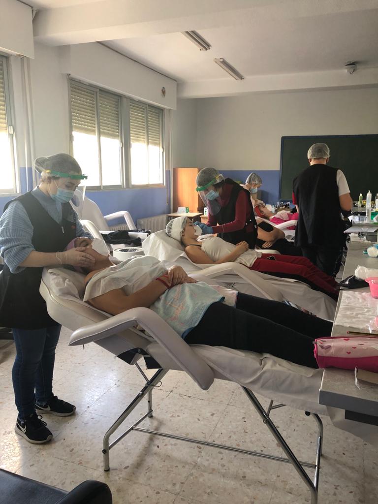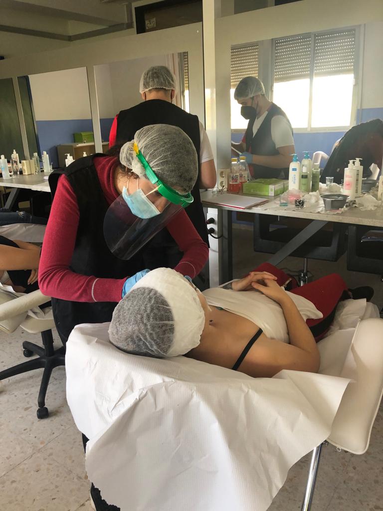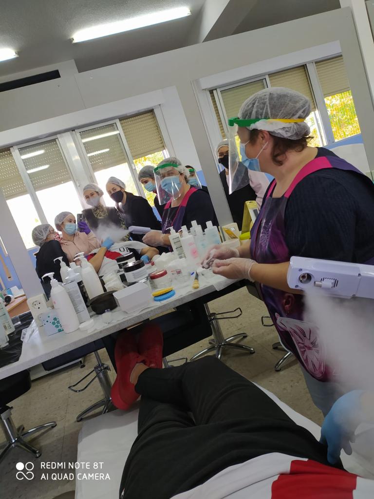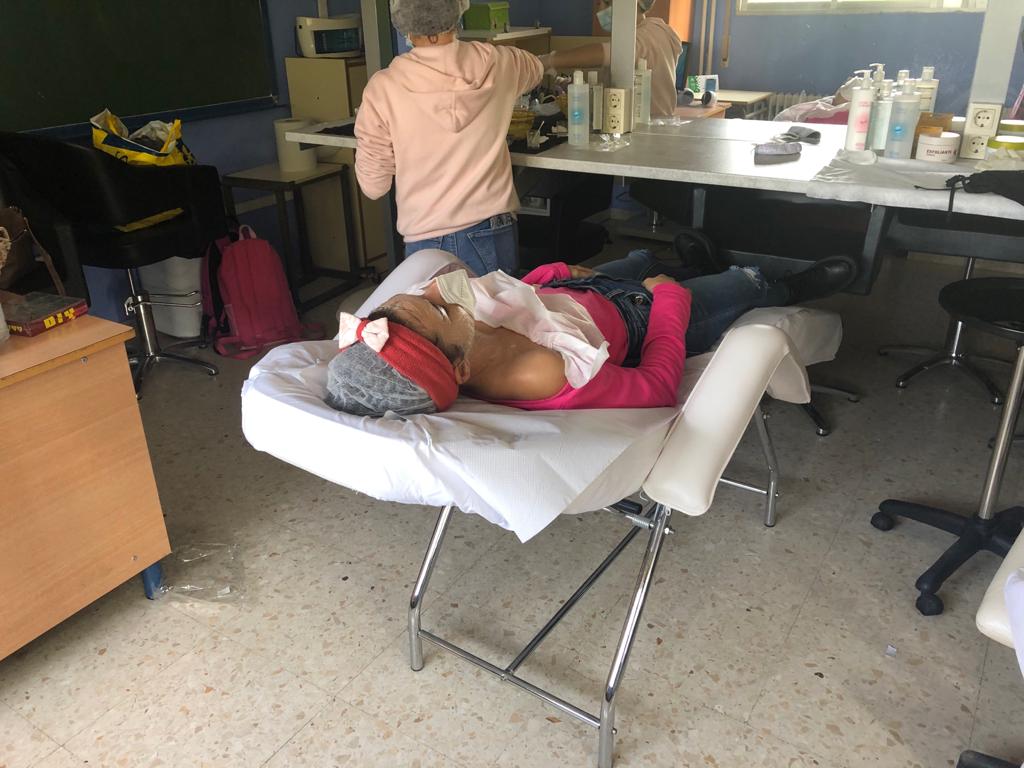 Por parte de una gran profesional del mundo de la estética Liudmila Syipi, junto a Mª del Carmen Sánchez y alumnos de 2º EIB.