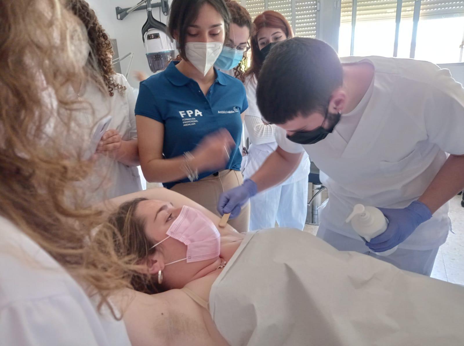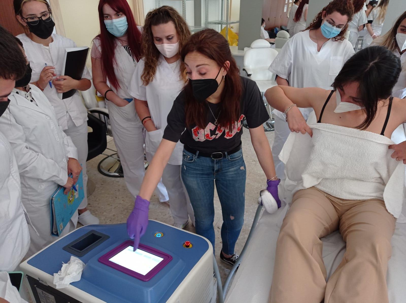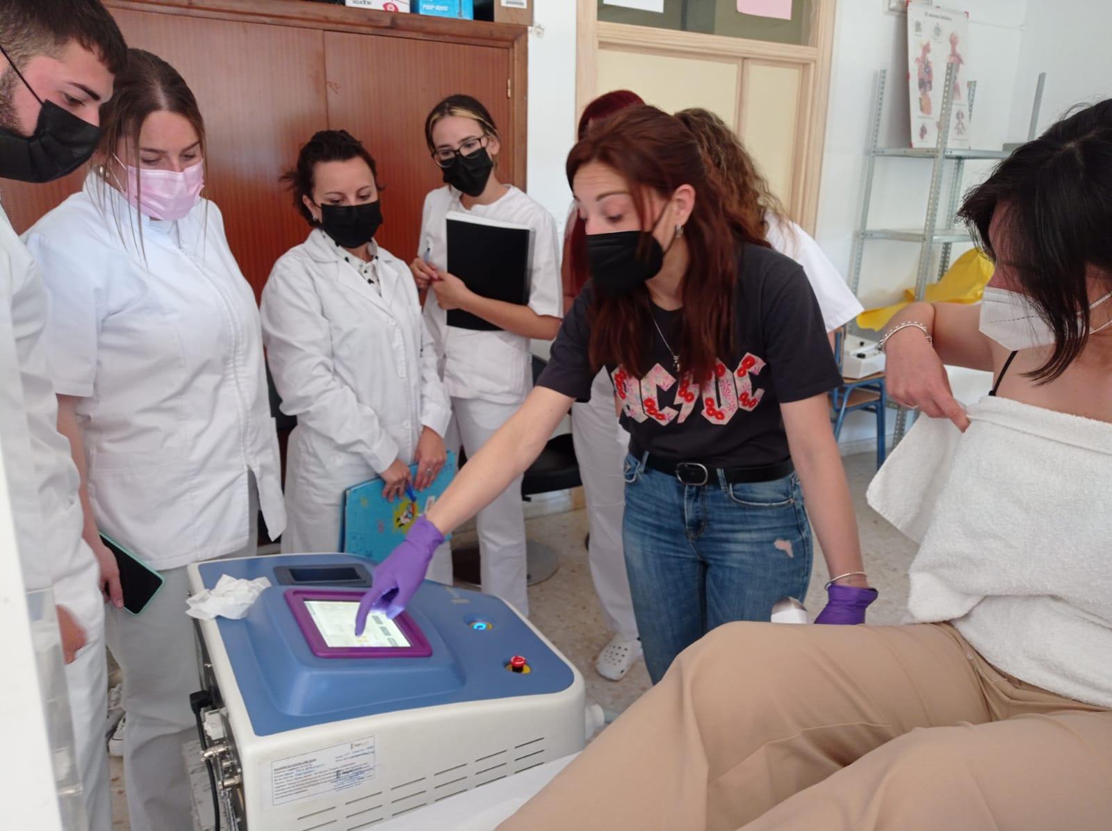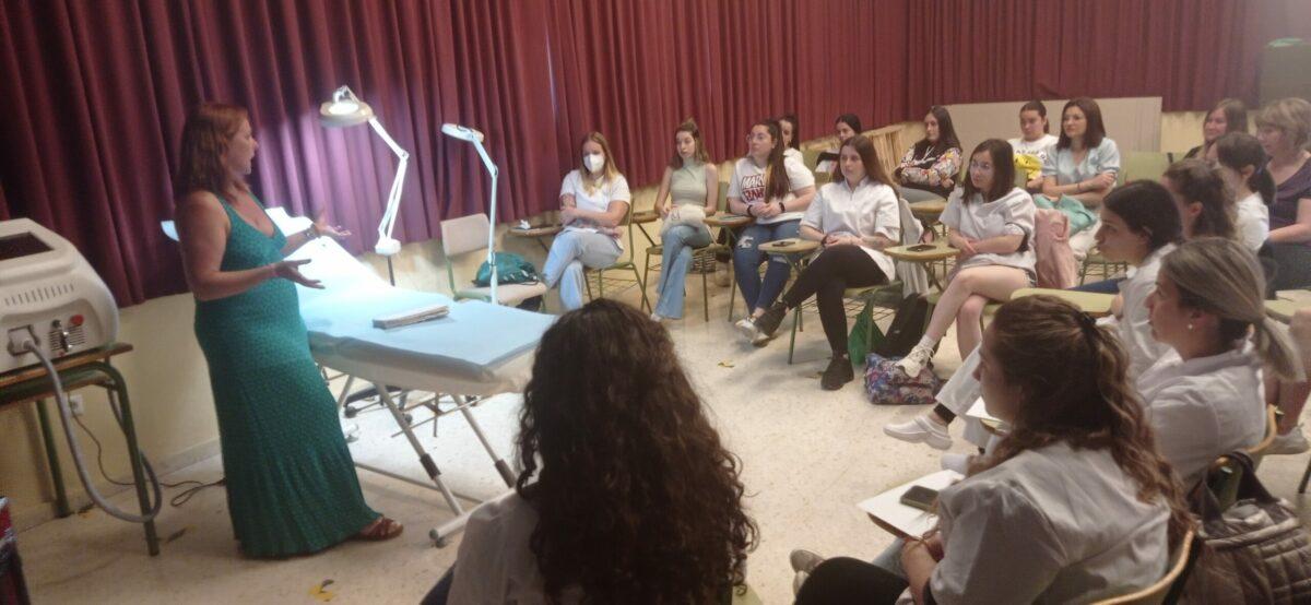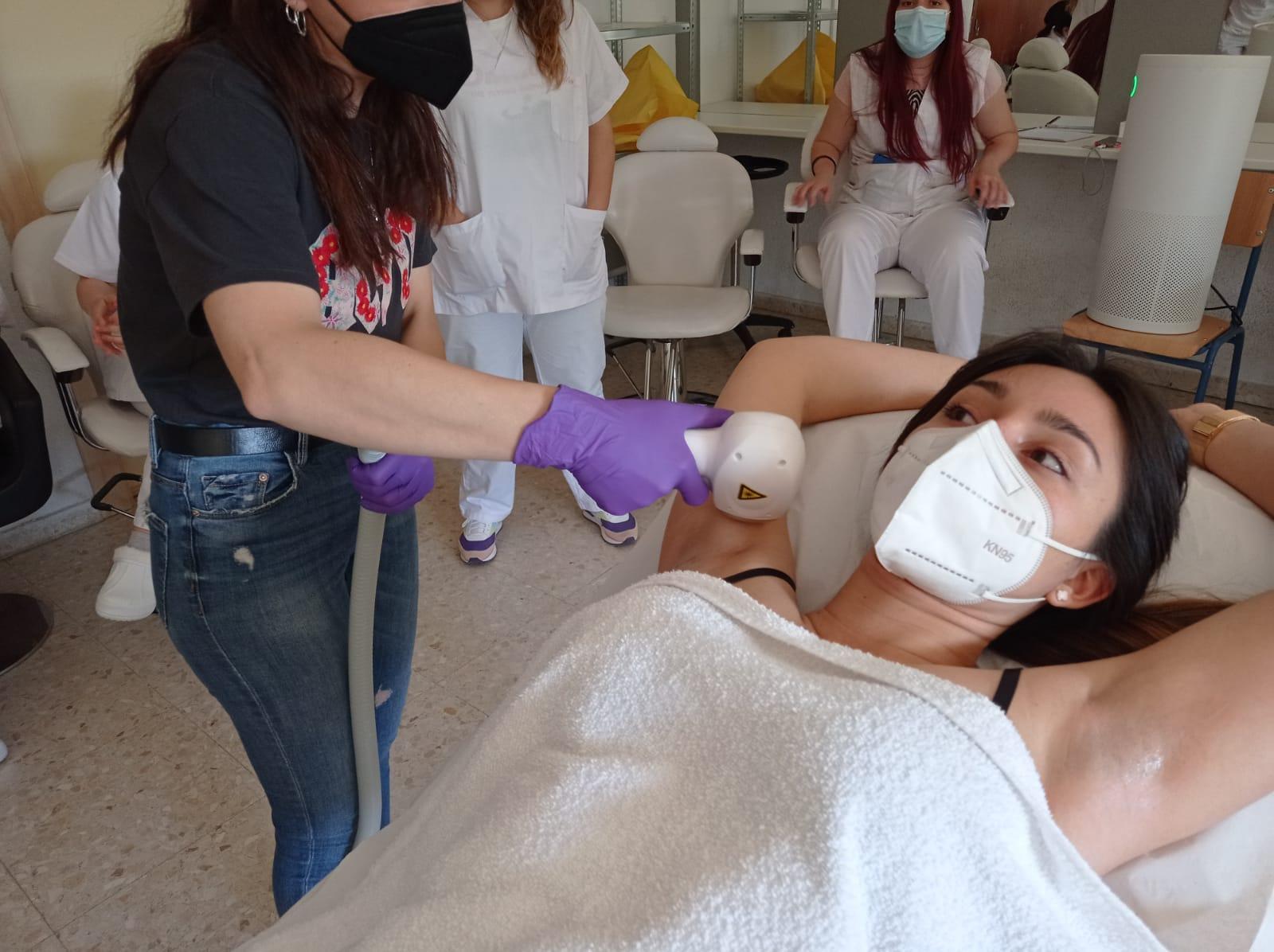 🙂 17/5/2022. Masterclass y práctica de depilación laser de diodo, con la colaboración de la empresa CRISALIDA, junto con la participación de las alumnas de 1º EBE, 1º EIB, muchas gracias Ana por enseñarnos tu profesión en IES Himilce.