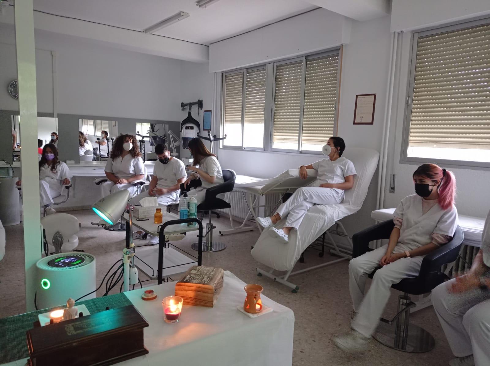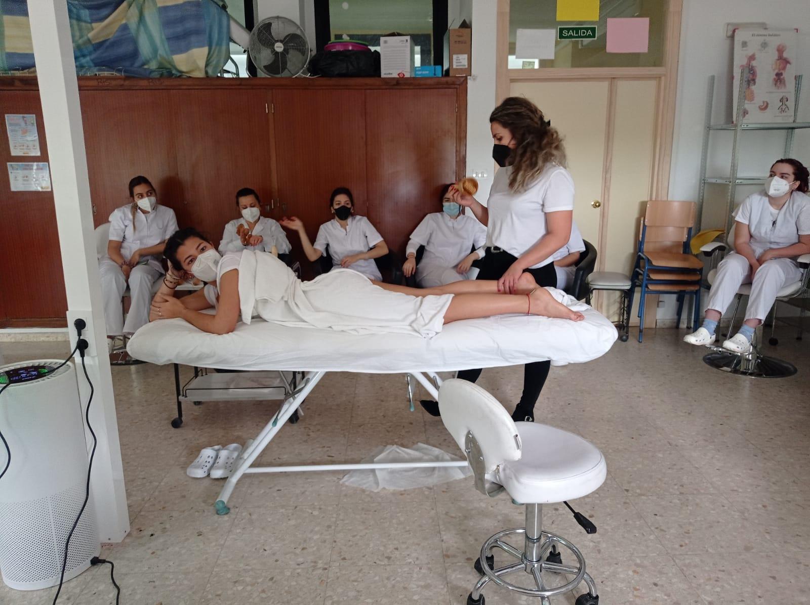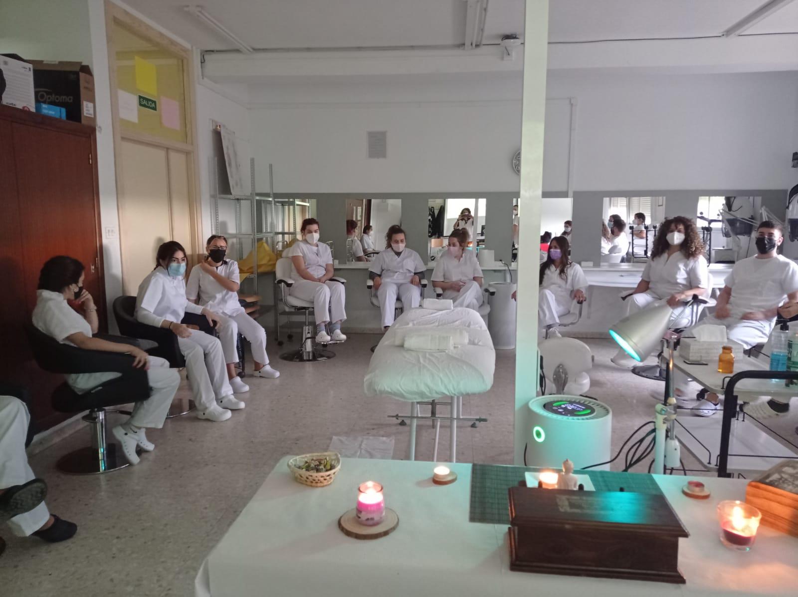 🙂 25/1/2022. Charla sobre técnicas sensoriales y accesorios de masaje en estética. Realizada por el profesor y profesional de masaje Jose Antonio Lechuga del centro de formación NISHATIFORMACIÓN, a los alumnos de Imagen Personal, 2º EBE, 1º y 2ºEIB.