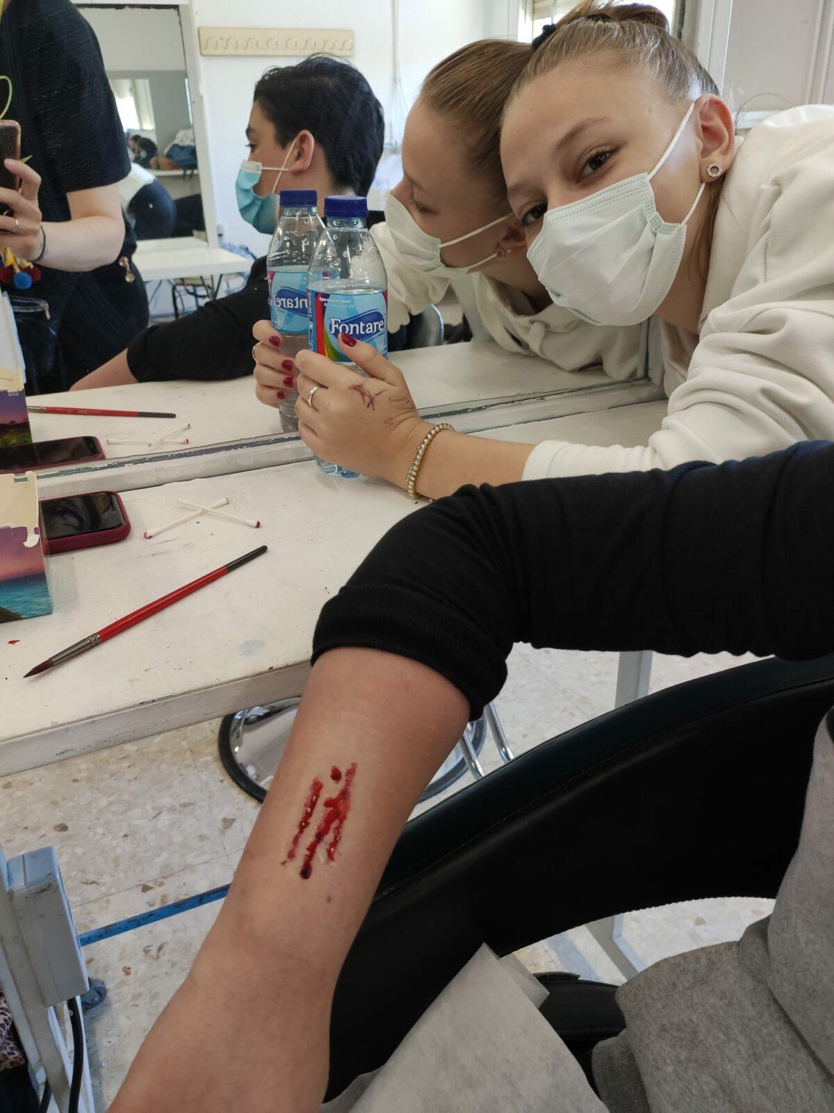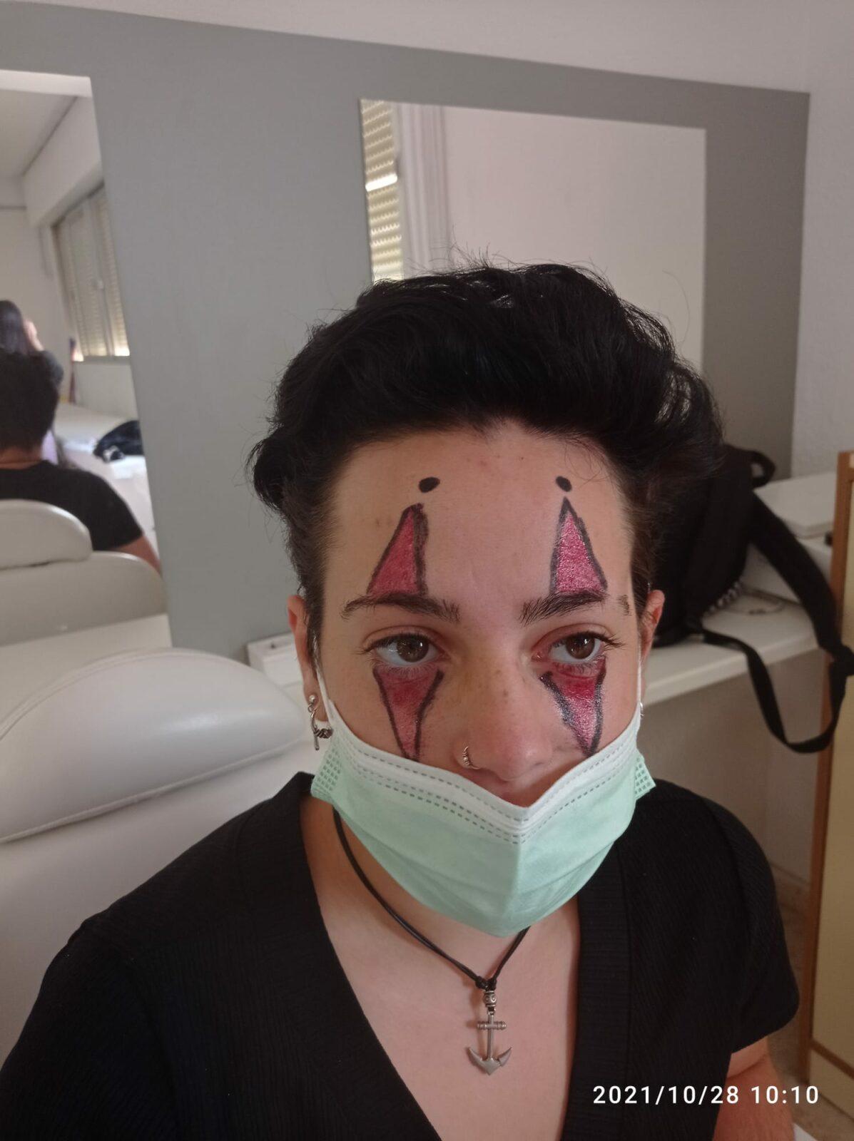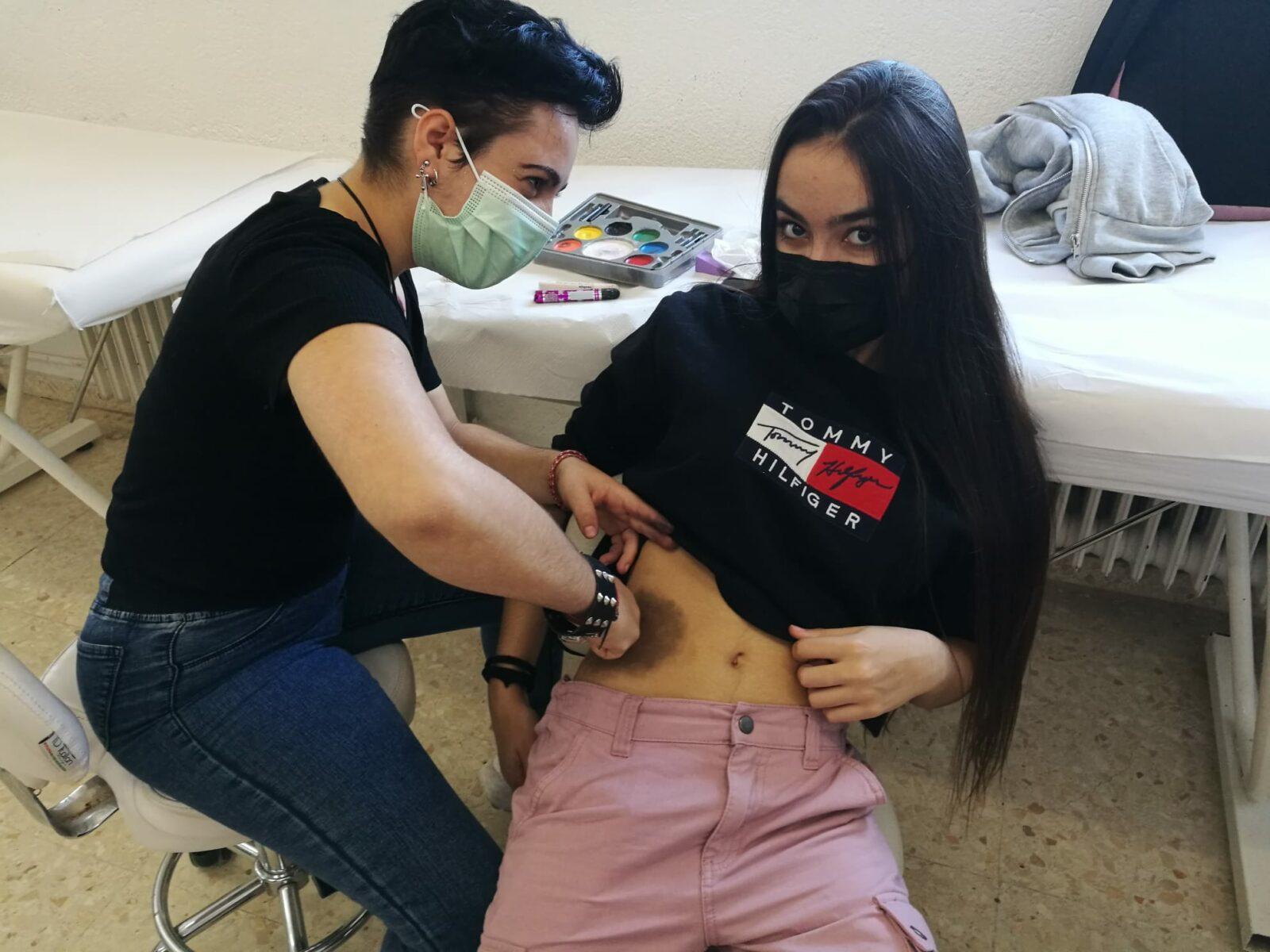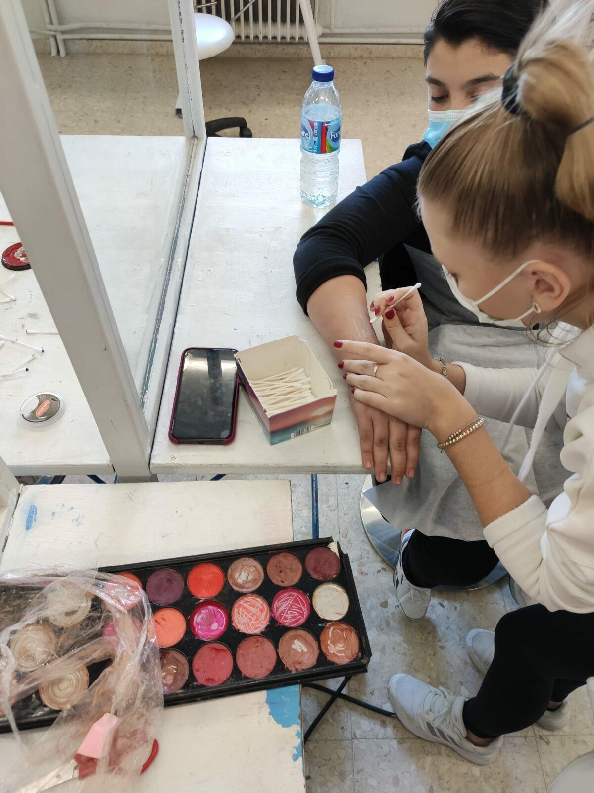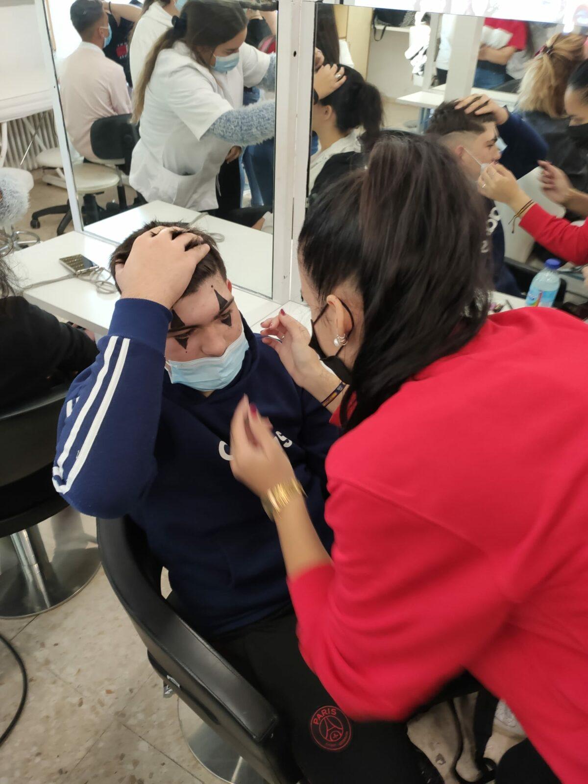 🙂 19/3/2022. Realización de diversos maquillajes de fantasía por el alumnado de FPB de peluquería y estética.