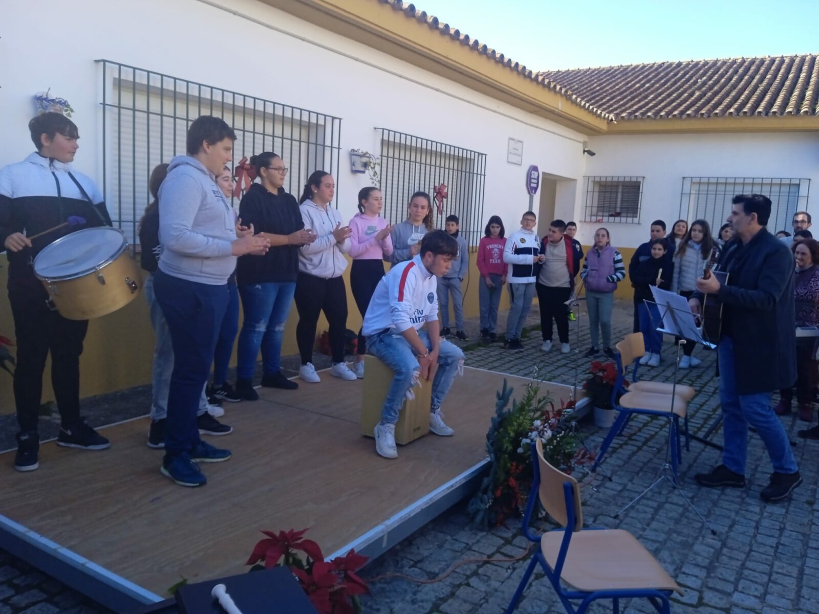 Los estudiantes de 2º ESO  han cantado villancicos a partir de cuarta hora en el patio de arcos dirigidos por su profesor de Música Miguel León. A este evento han sido invitados profesorado, alumnado y familias que hayan querido asistir.