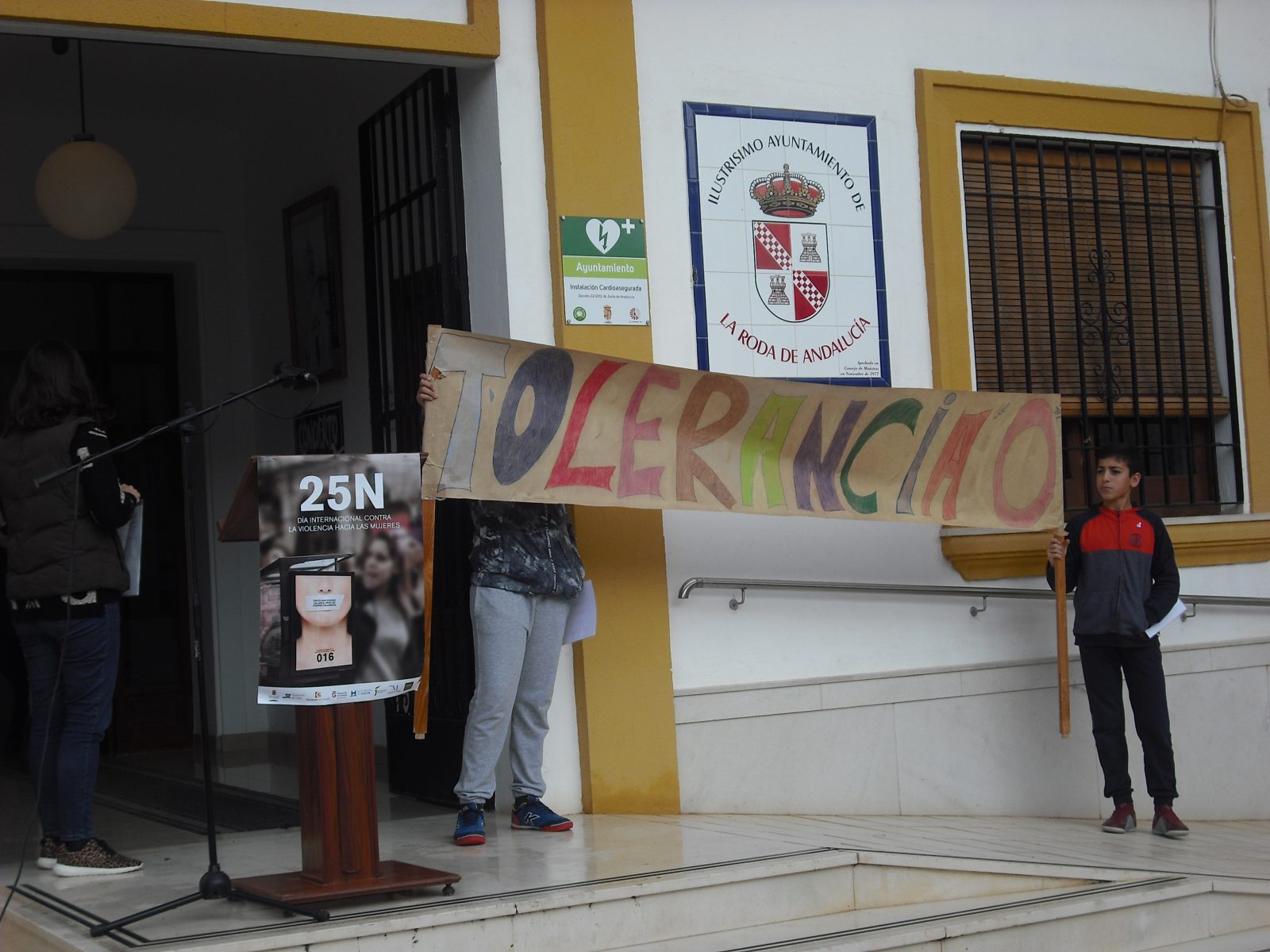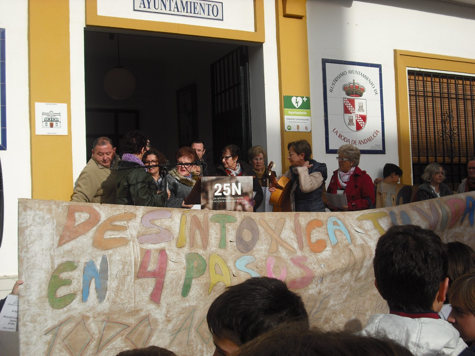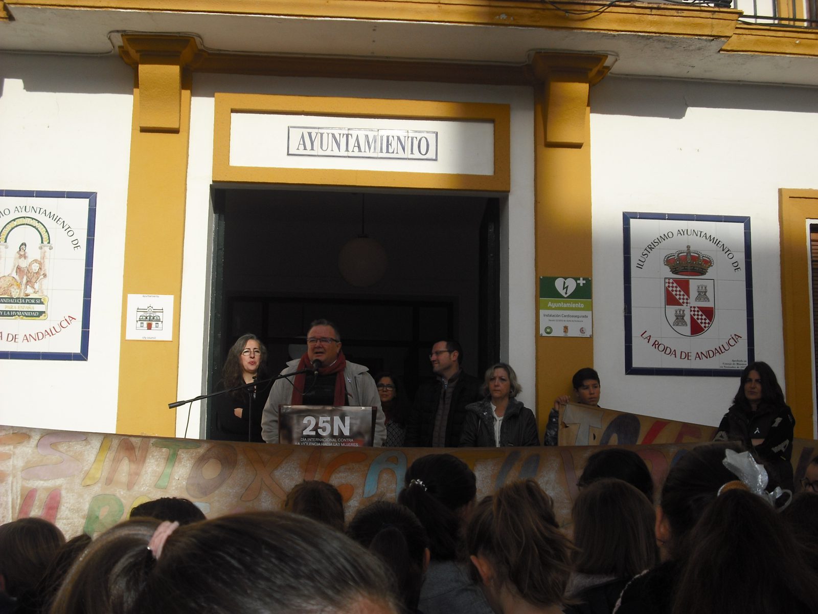 El C.E.I.P. Manuel Siurot, I.E.S. La Roda, S.E.P. La Roda de Andalucía y El Ayuntamiento hemos realizado un acto en la puerta del ayuntamiento para denunciar la violencia de género.