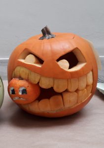 Los profesores del departamento de Inglés queremos agradecer a los alumnos su alta participación en el “Jack O’Lantern Contest” con motivo de la celebración del día de Halloween en la cultura anglosajona. En el concurso han participado 29 calabazas realizadas por un total de 70 alumnos de 1º ESO,  2º ESO, 3º ESO PMAR y los alumnos del Aula Específica. El jurado encargado de decidir la calabaza ganadora del concurso ha estado formado por Isabel Cánovas, Mª del Carmen Duarte y Jaime Valderrama (profesores de Inglés), Isabel Muñoz (profesora de EPV) y Lourdes Moreno (profesora de Música). Otros profesores del centro también han participado con sus opiniones a lo largo de la mañana del día 31 de octubre. El jurado ha decido que la calabaza ganadora de 1º ESO sea la nº 1, realizada por Saray Álvarez Perálvarez y Lucía López Romero de 1º B. La calabaza ganadora de 2º ESO ha sido la nº 9, realizada por Álvaro Castro Maldonado y Claudia Castro Maldonado de 2º A y Carmen Rocío Jiménez Molina de 2º B. Al finalizar la elección, el jurado ha hecho entrega de un pequeño detalle a los ganadores recordando la tradición de “Trick or Treat?”.