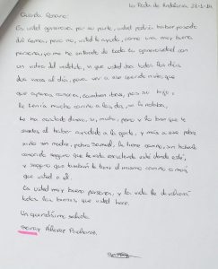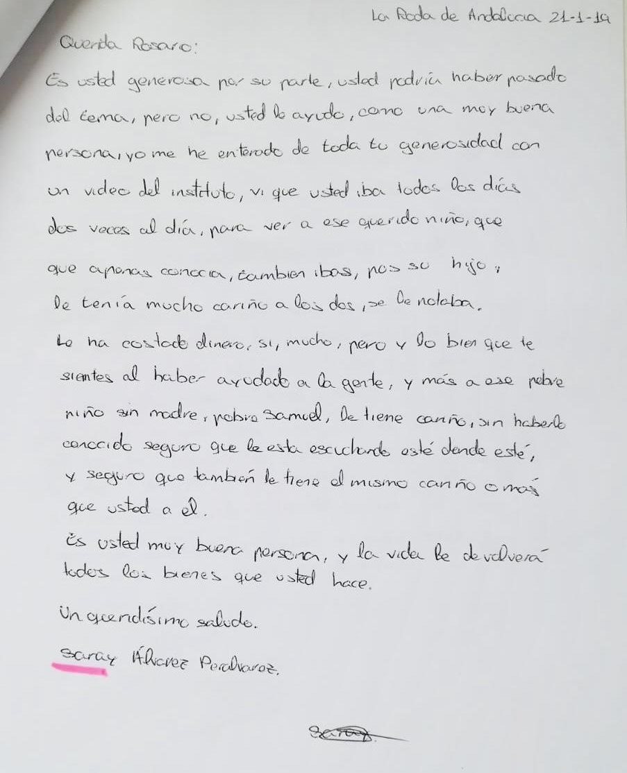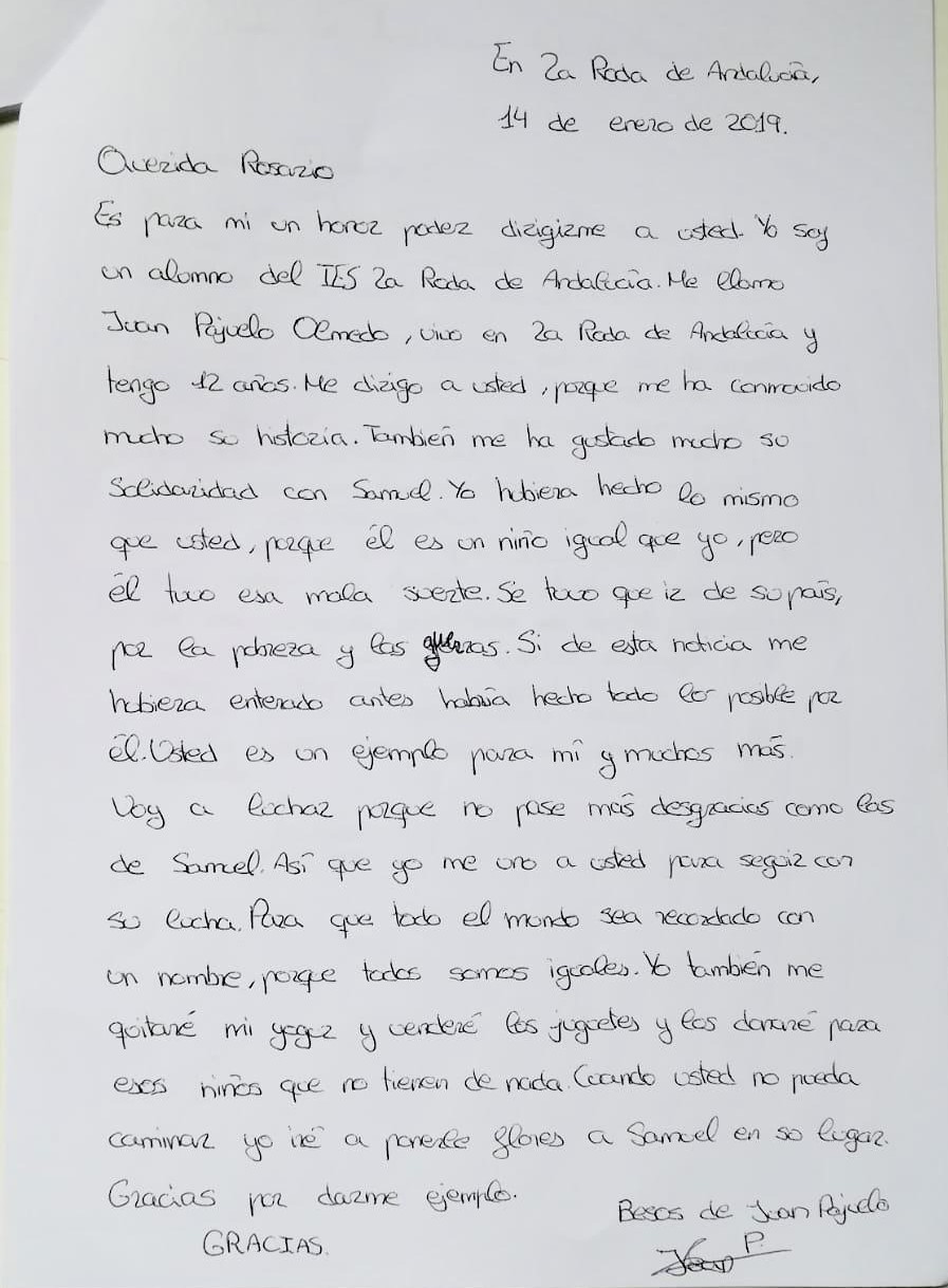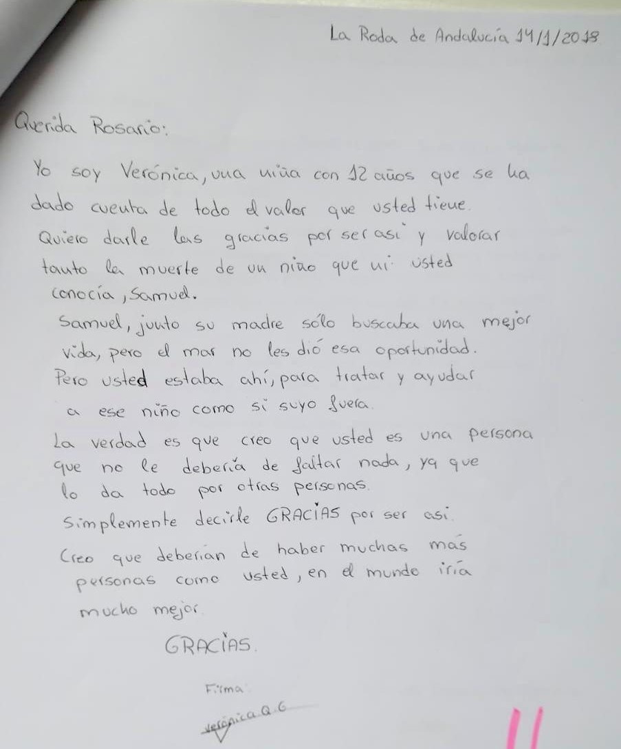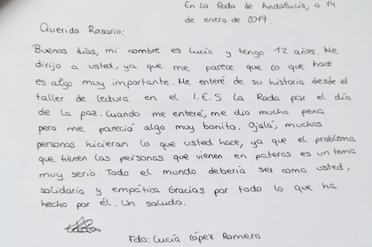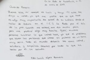 Este año hemos querido destacar la labor ejercida por Rosario una mujer de Bárbate que está cuidando la tumba de un inmigrante fallecido.  En Barbate, Cádiz, un cementerio alberga a los emigrantes sin nombre que fallecen en su intento de alcanzar territorio español. El alumnado de 1º ESO en taller de lectura ha escrito cartas de agradecimiento por la labor realizada por Rosario.
