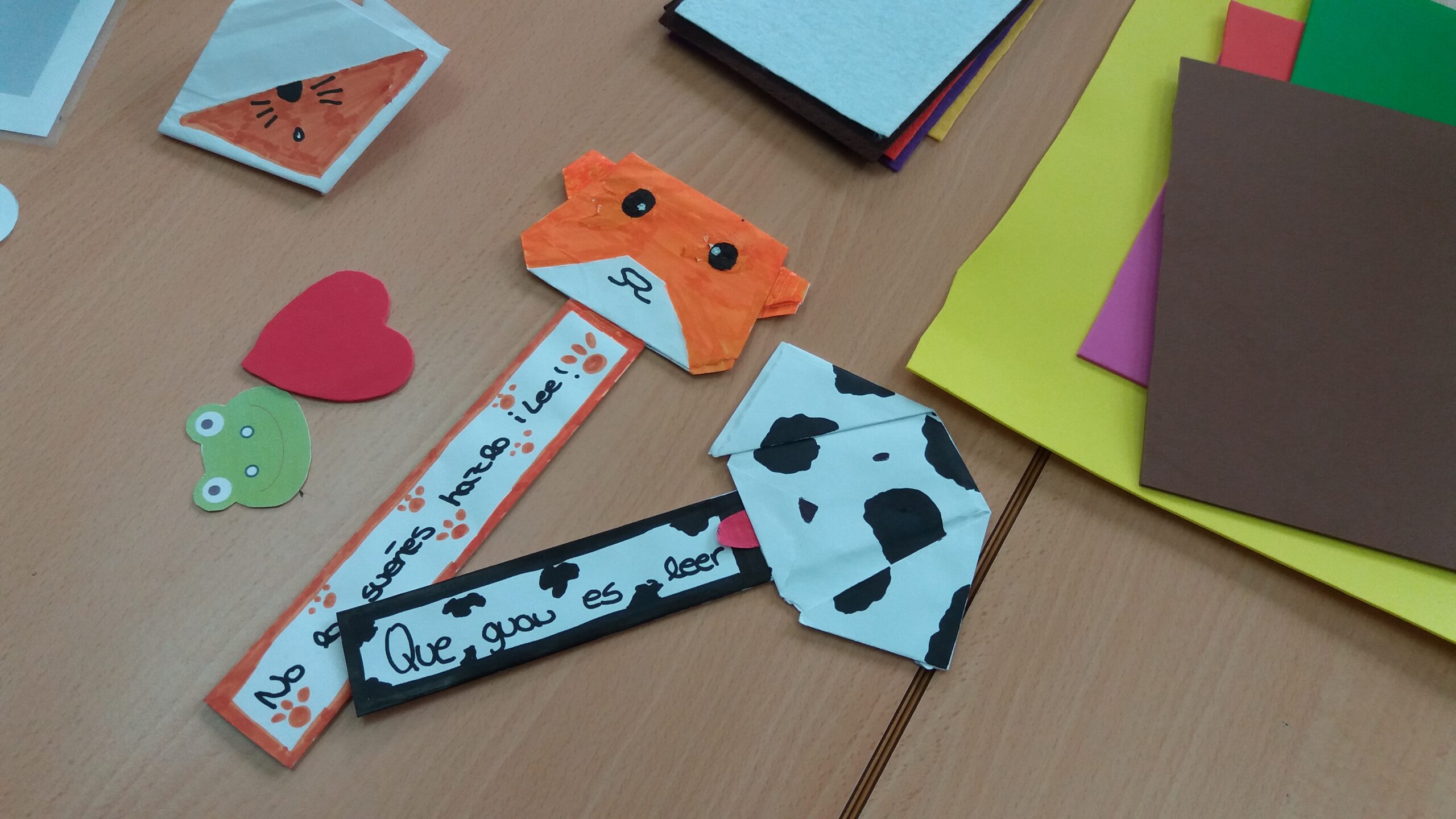 Durante los recreos, aquellos que lo desearon asistieron a este taller en el que con materiales muy diversos, técnicas sencillas y mucha creatividad elaboraron sus propios marcapáginas.