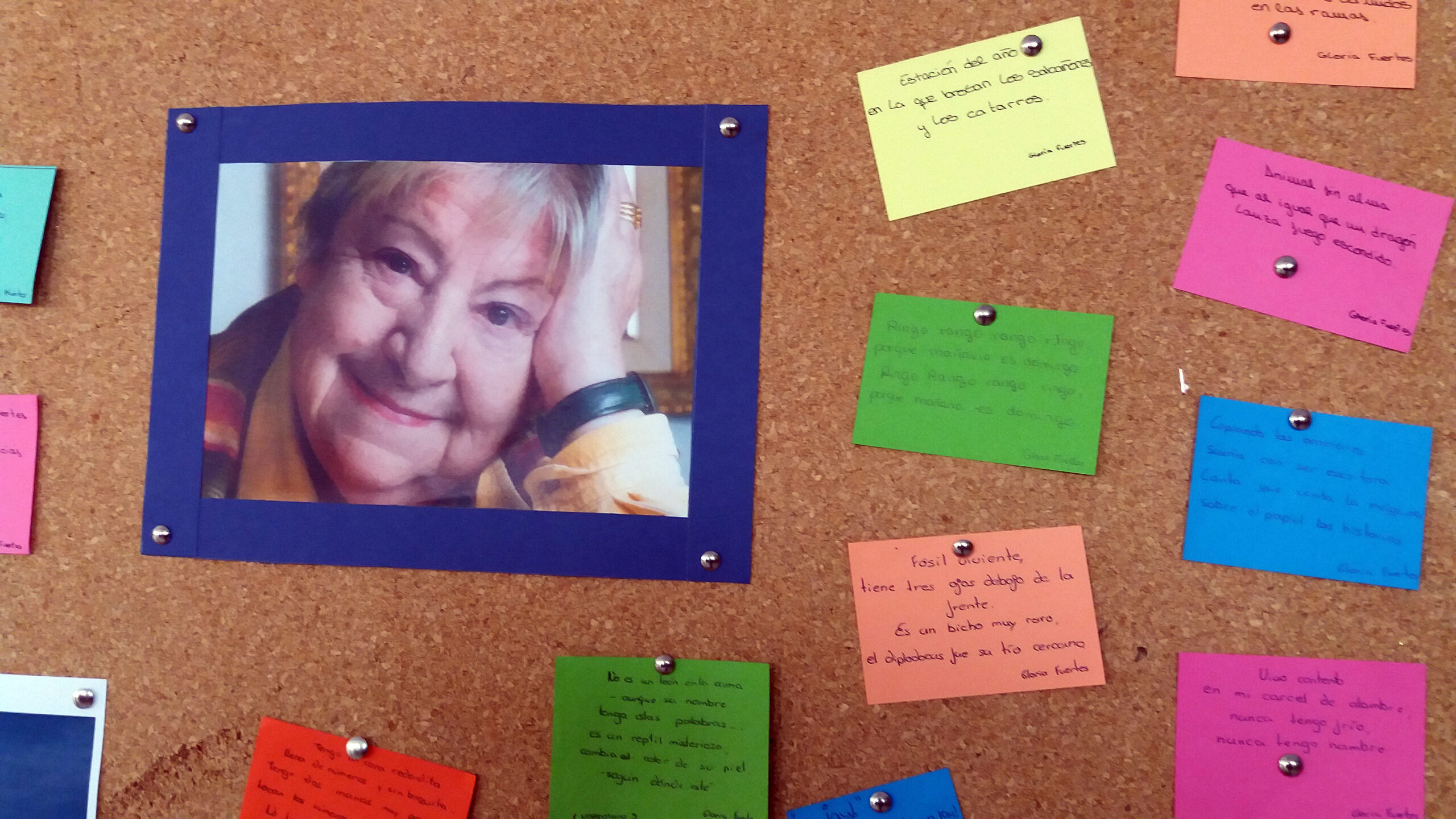 Así mismo, durante el mes de mayo, la Biblioteca también celebró el primer centenario del nacimiento de la poetisa Gloria Fuertes. Un panel conmemorativo, formado por poemas de la autora escritos por los propios alumnos sobre hojas de colores, sirvió para recordarla.