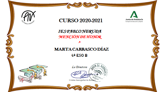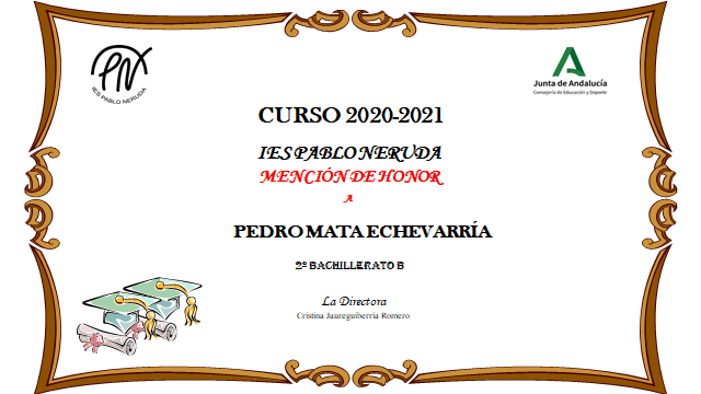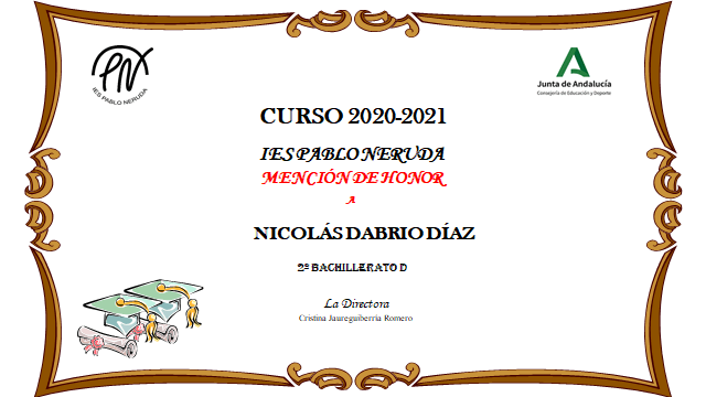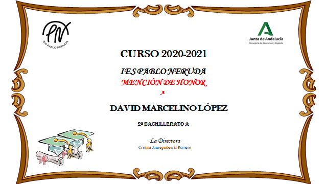 MATRÍCULAS DE HONOR DE 2º DE BACHILLERATO Y CICLOS |
