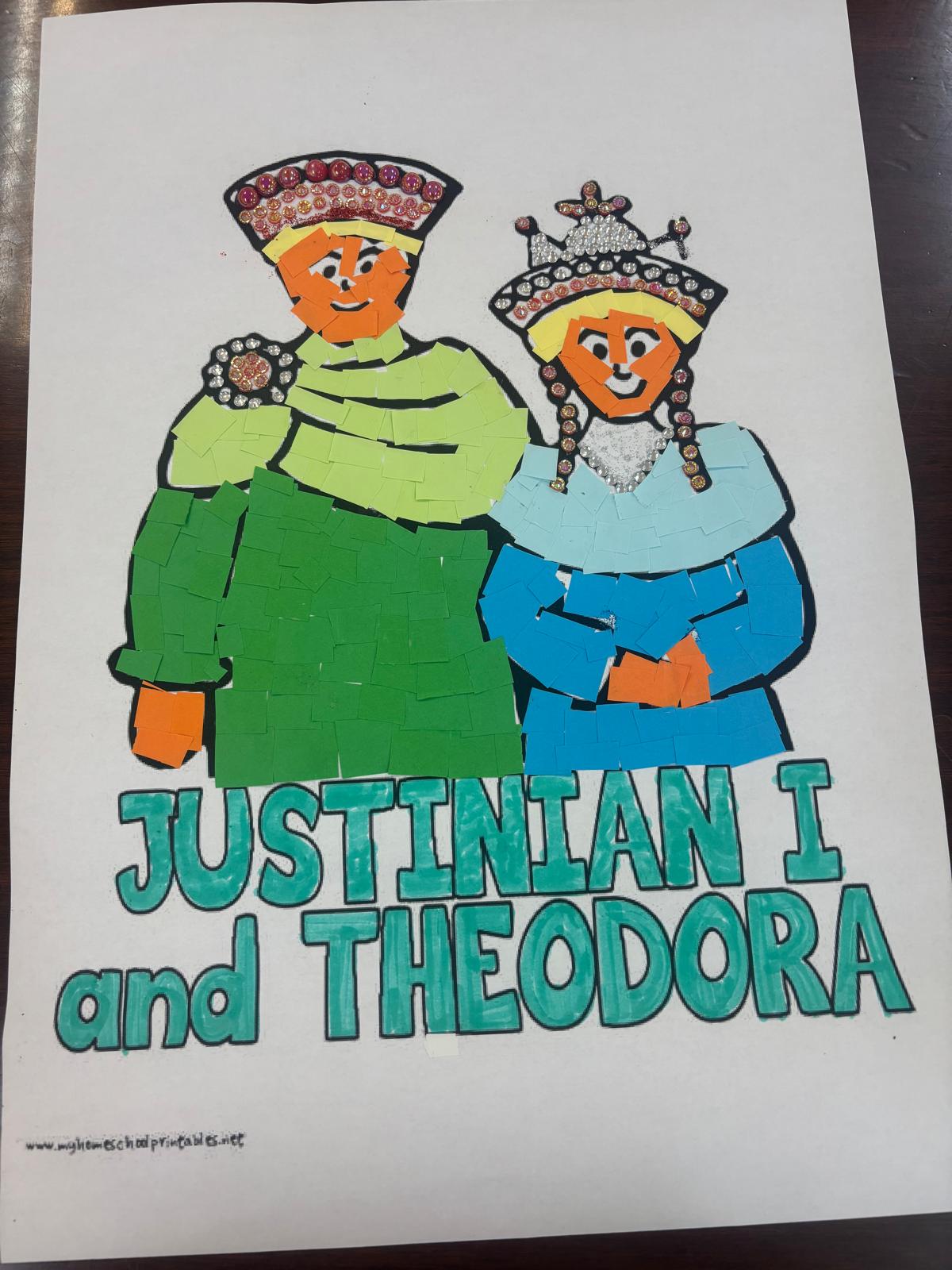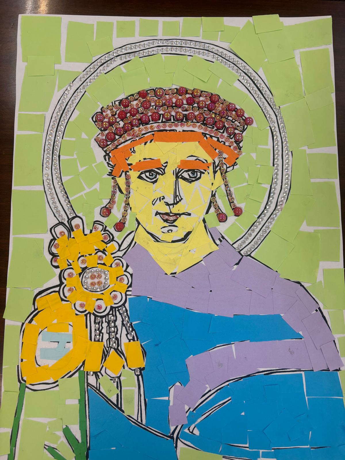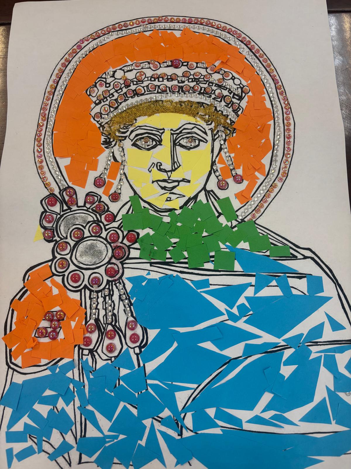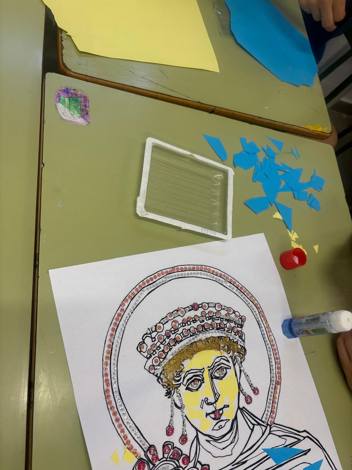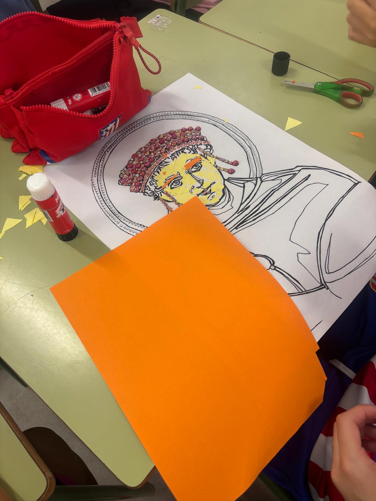 El alumnado de 2º de ESO B ha viajado en el tiempo para trabajar en la creación de un mosaico inspirado en los famosos retratos bizantinos del emperador Justiniano y la emperatriz Teodora.
