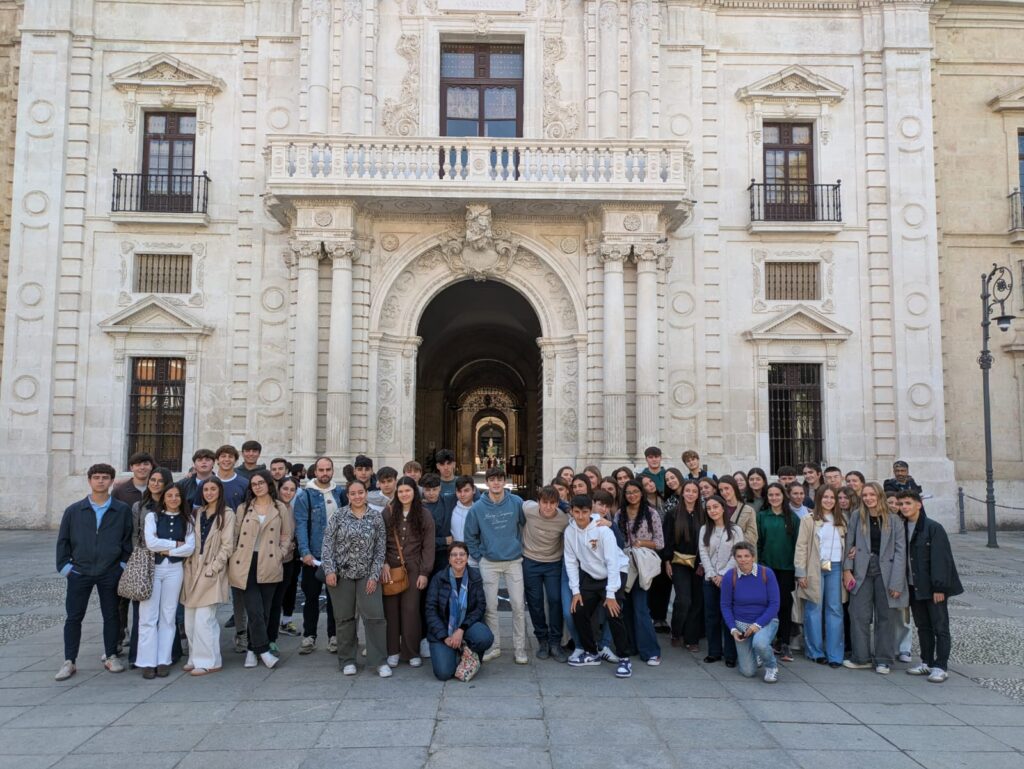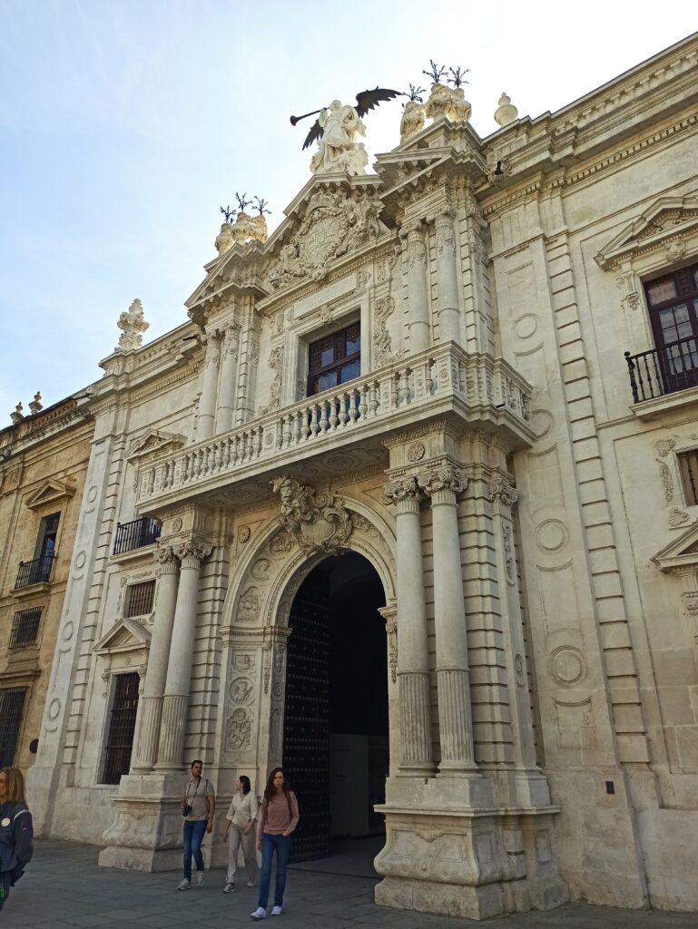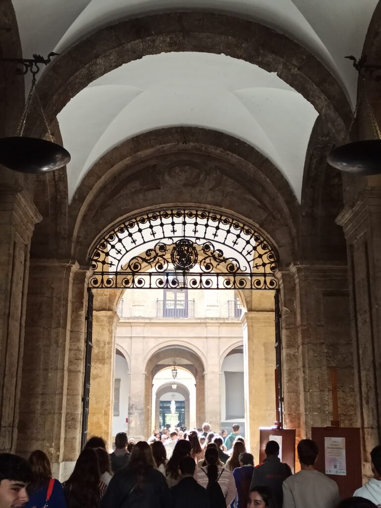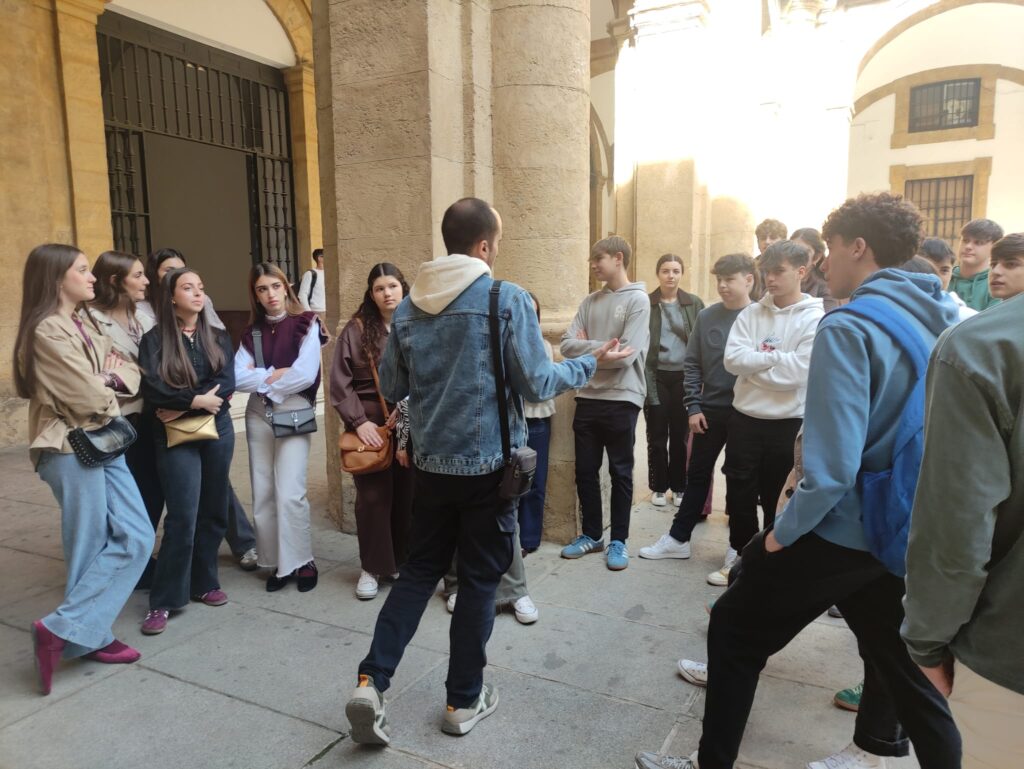 A continuación, visitamos la Real Fábrica de Tabacos en la que se encuentra actualmente una de las sedes del Rectorado de la Universidad de Sevilla y que alberga la Facultad de Filología y Geografía e Historia. Nuestro alumnado tuvo la oportunidad de conocer el origen y la historia de este majestuoso edificio además de realizar una visitar por los espacios interiores de mismo.