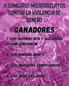 Hoy 25 de noviembre, la profesora de Lengua María José Martín ha comunicado los ganadores del Concurso de Microrrelatos contra la Violencia de Género.