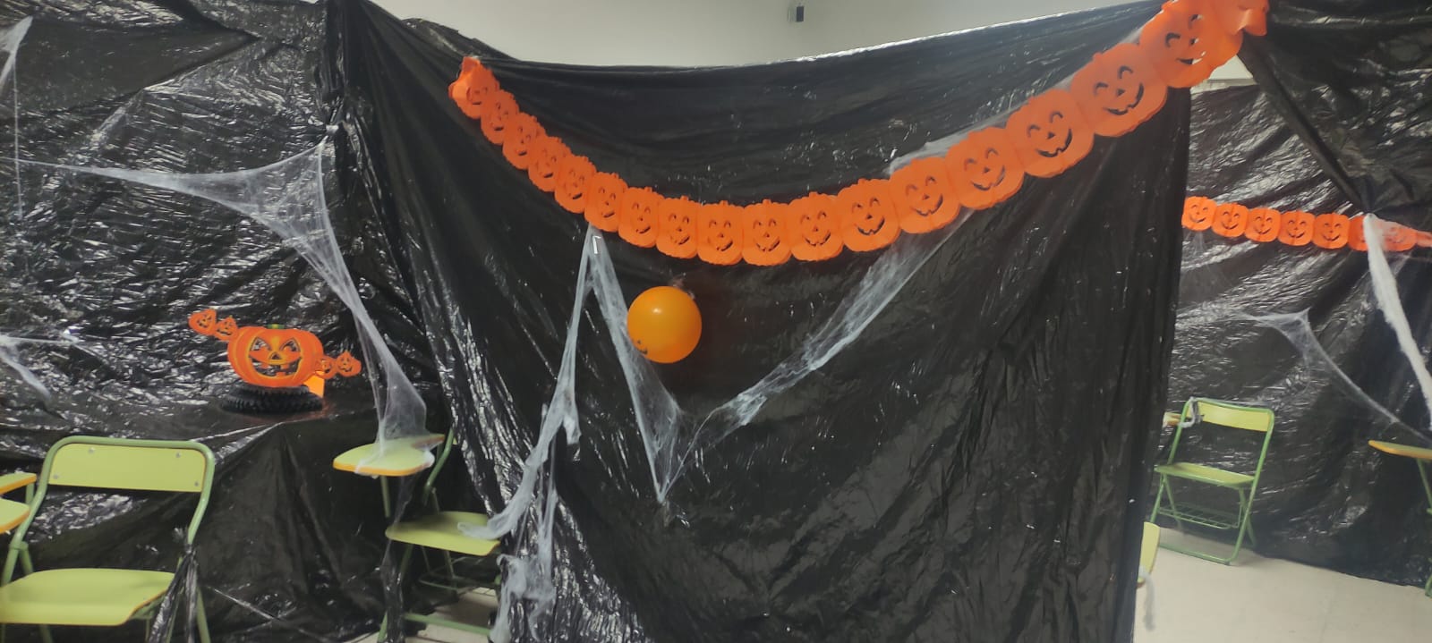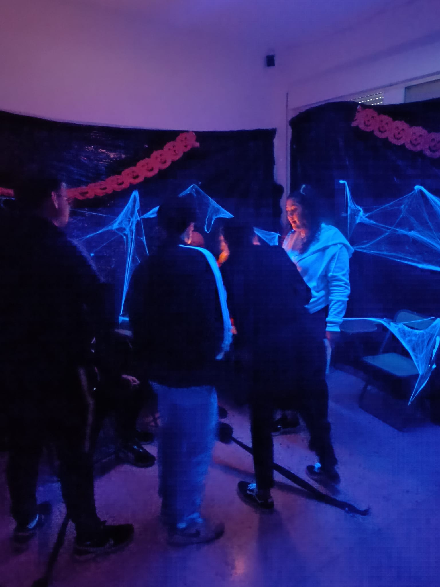 Desde el momento en que cruzaron el umbral, nuestros jóvenes detectives se sumergieron en una atmósfera de misterio y diversión. ¡La sala de audiovisuales se transformó en un escenario de pesadilla, con telarañas, luces tenues y detalles macabros que creaban el ambiente perfecto para la aventura que les esperaba!