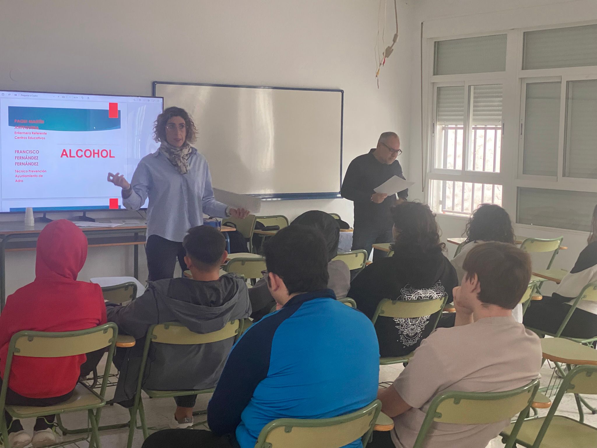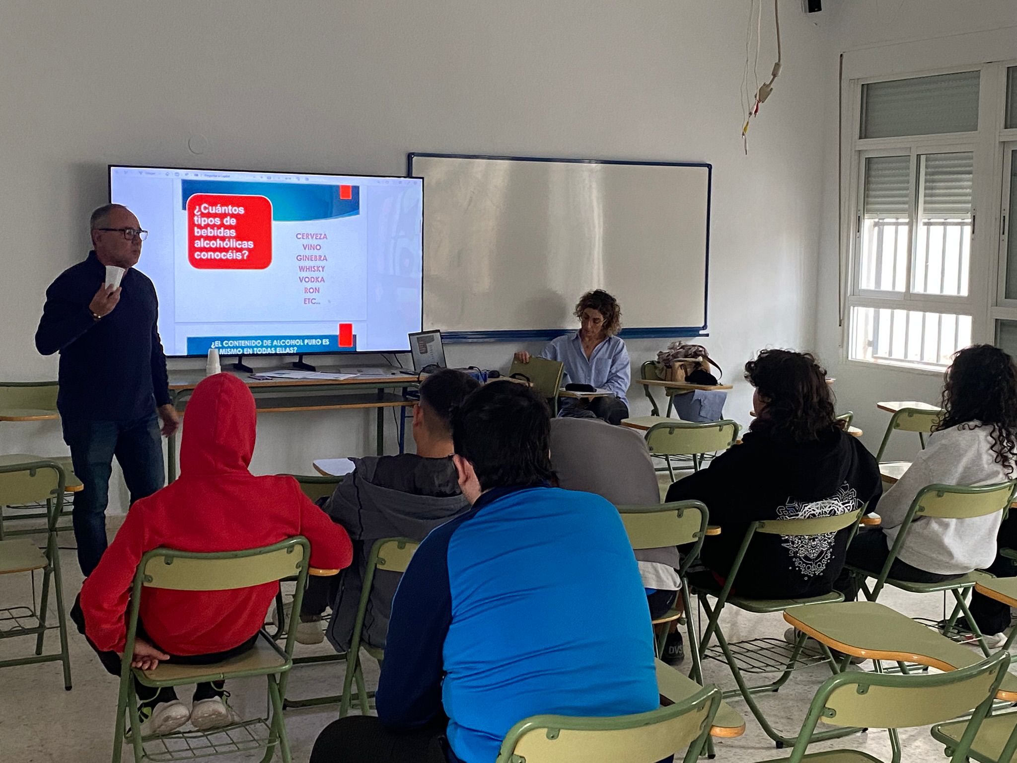 Durante la sesión, Paqui concienció al alumnado de 4º de ESO y 2º de FP Básica sobre los perjuicios que el consumo de alcohol provoca en la salud, apoyándose en ejemplos reales y casos prácticos que despertaron gran interés entre los estudiantes.