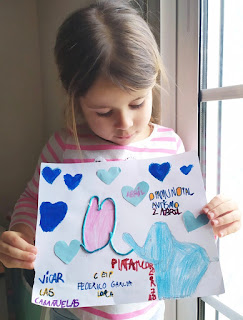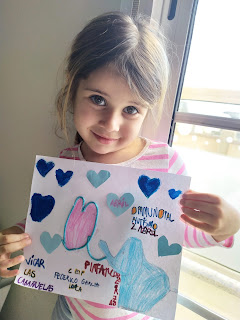 Abril nos muestra lo bonito que le ha quedado su dibujo decorado con corazones azules y lleno de creatividad. Esa ventana se va a ver preciosa!!!