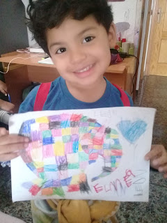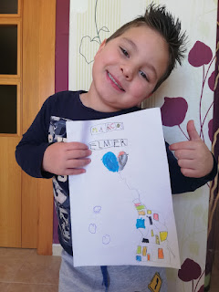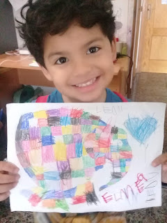 Marcos ha hecho su ELMER y lo ha coloreado con diferentes colores y además le ha dibujado el corazón azul. Se ha quedado genial!!!