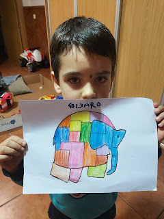 Álvaro nos muestra lo genial que le ha quedado su ELMER, lo ha dibujado y coloreado muy bien!!