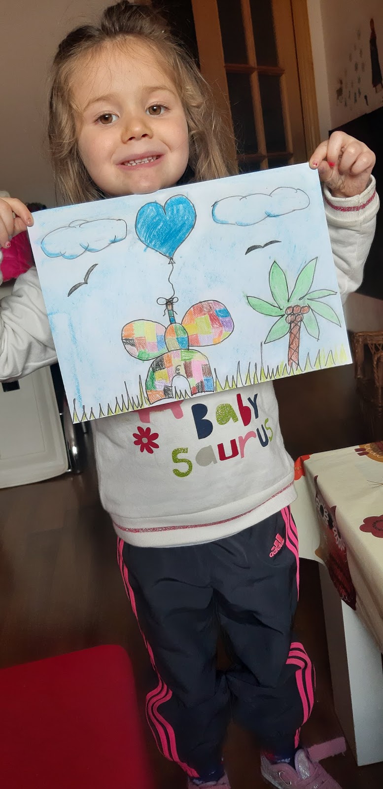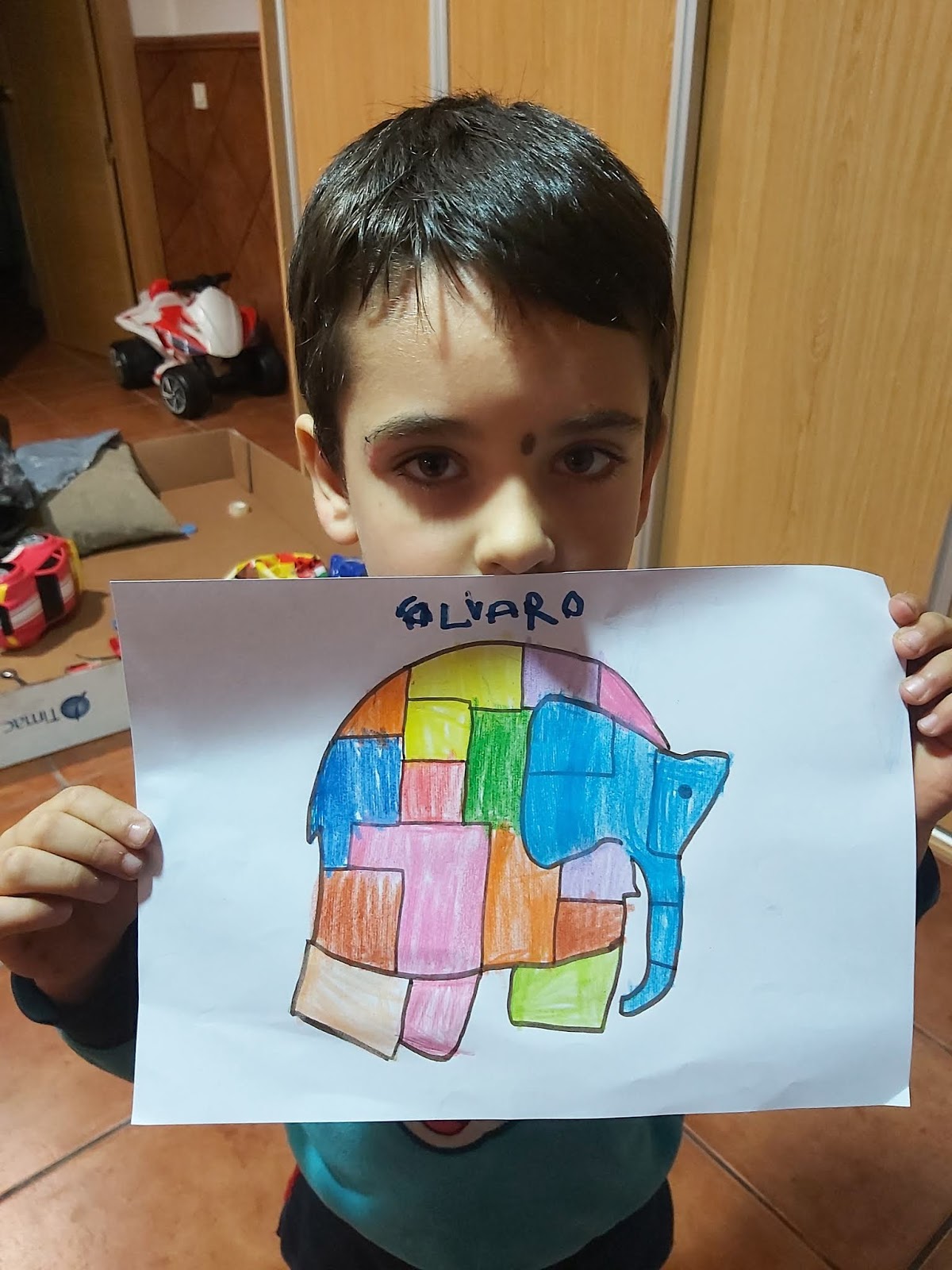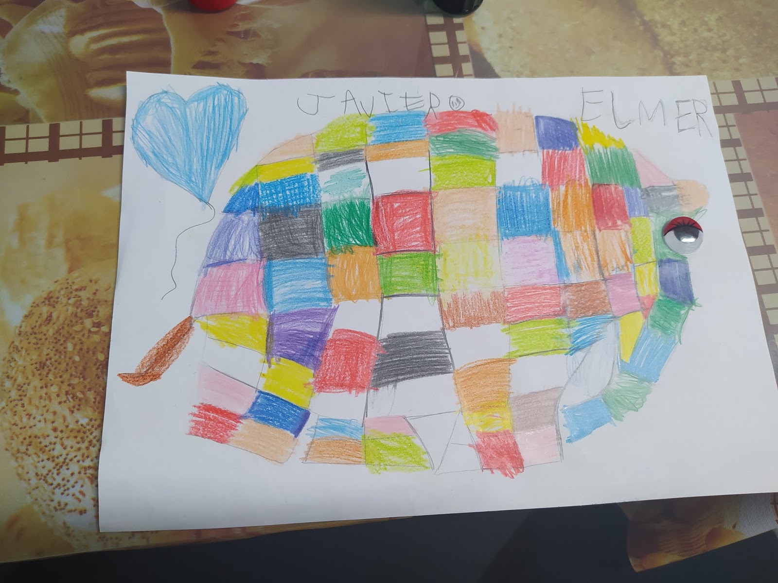 Álvaro nos muestra lo genial que le ha quedado su ELMER, lo ha dibujado y coloreado muy bien!!