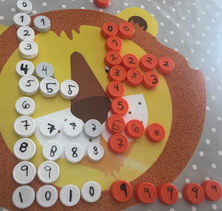 ÁLVARO ha hecho su actividad con sus muñecos, ha contado 10, los ha colocado, después la grafía que corresponde y por último ha puesto los tapones que le corresponde a cada muñeco.