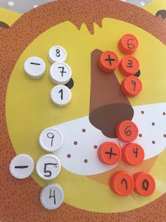 CAYETANA ha tenido una original idea, ha decidido hacer un juego. Ha coloreado 10 animalitos y los ha recortado, después ha escrito el número dentro del tapón y lo ha colocado al lado de la imagen de cada animal, por último ha hecho unas pinzas para coger las caquitas del animal y colocar tantas como indique el tapón.