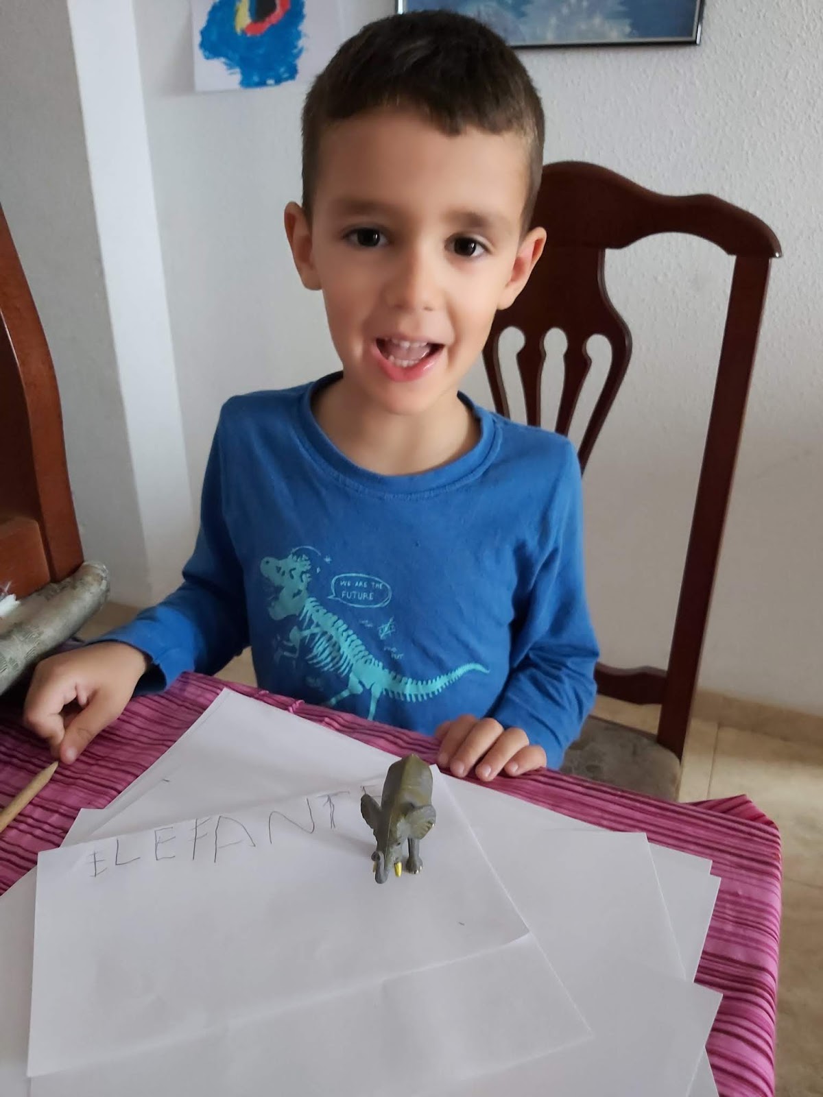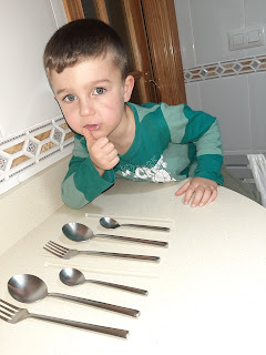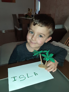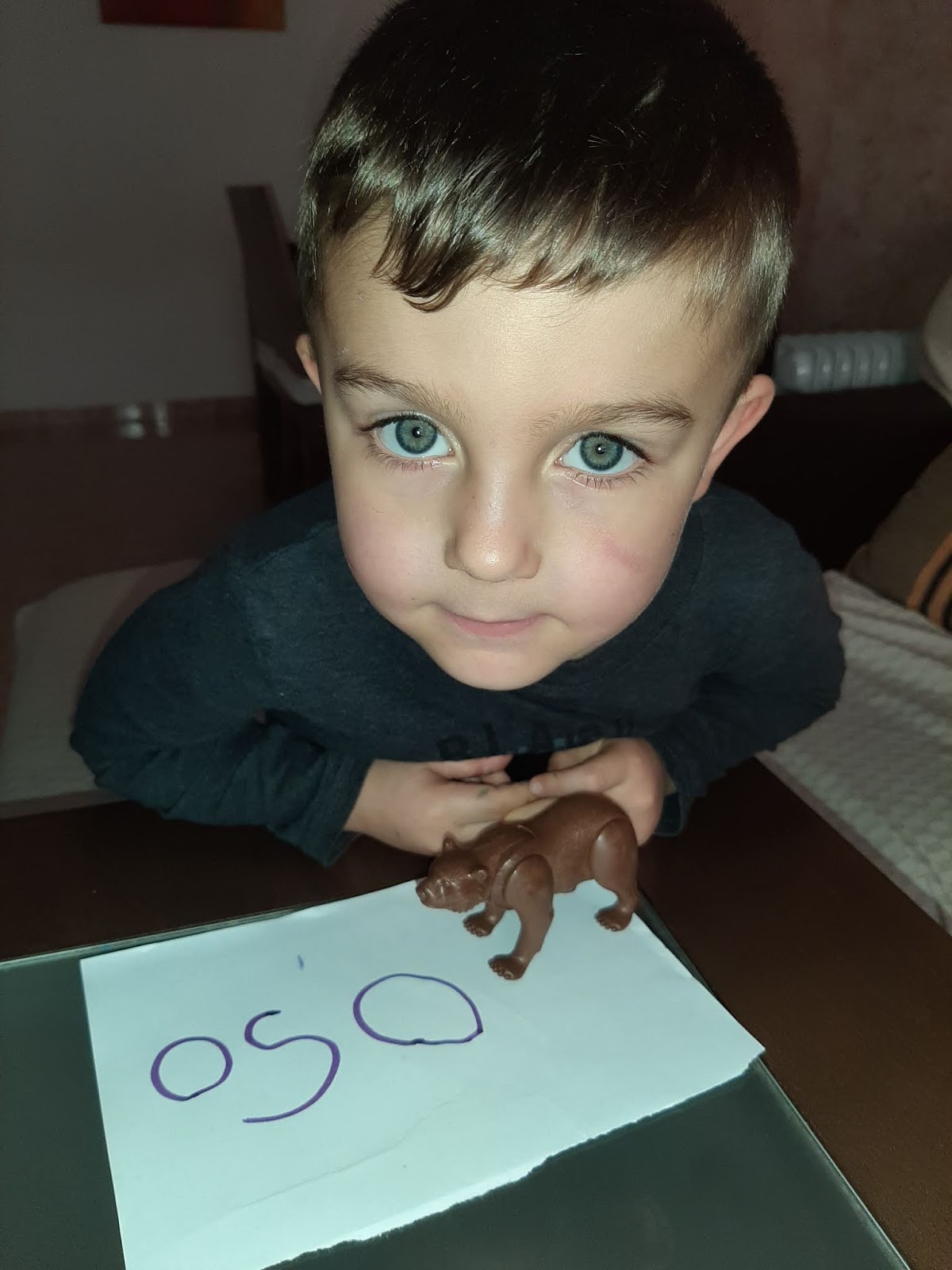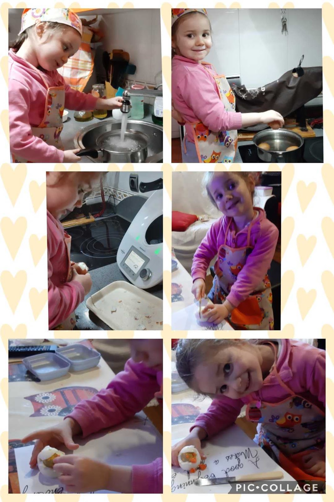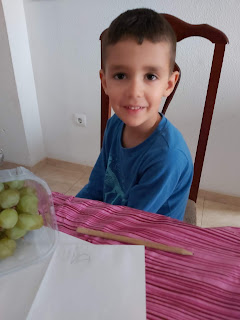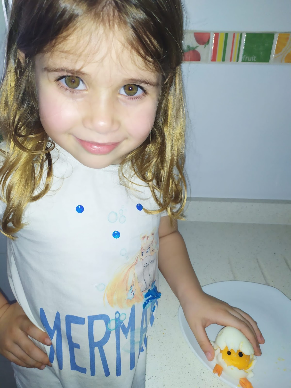 Mirad como le quita León con mucho cuidado la cáscara del huevo y así de bien le ha salido su pollito Pepe.
