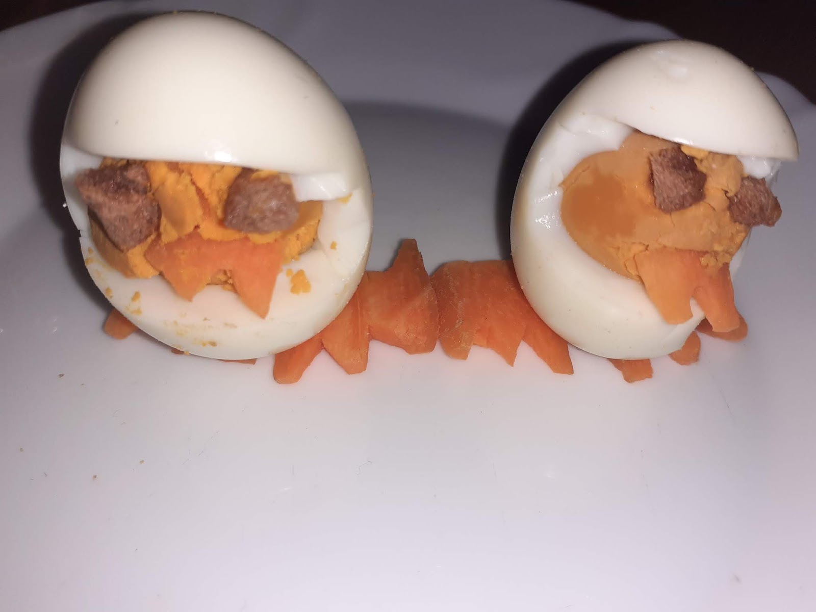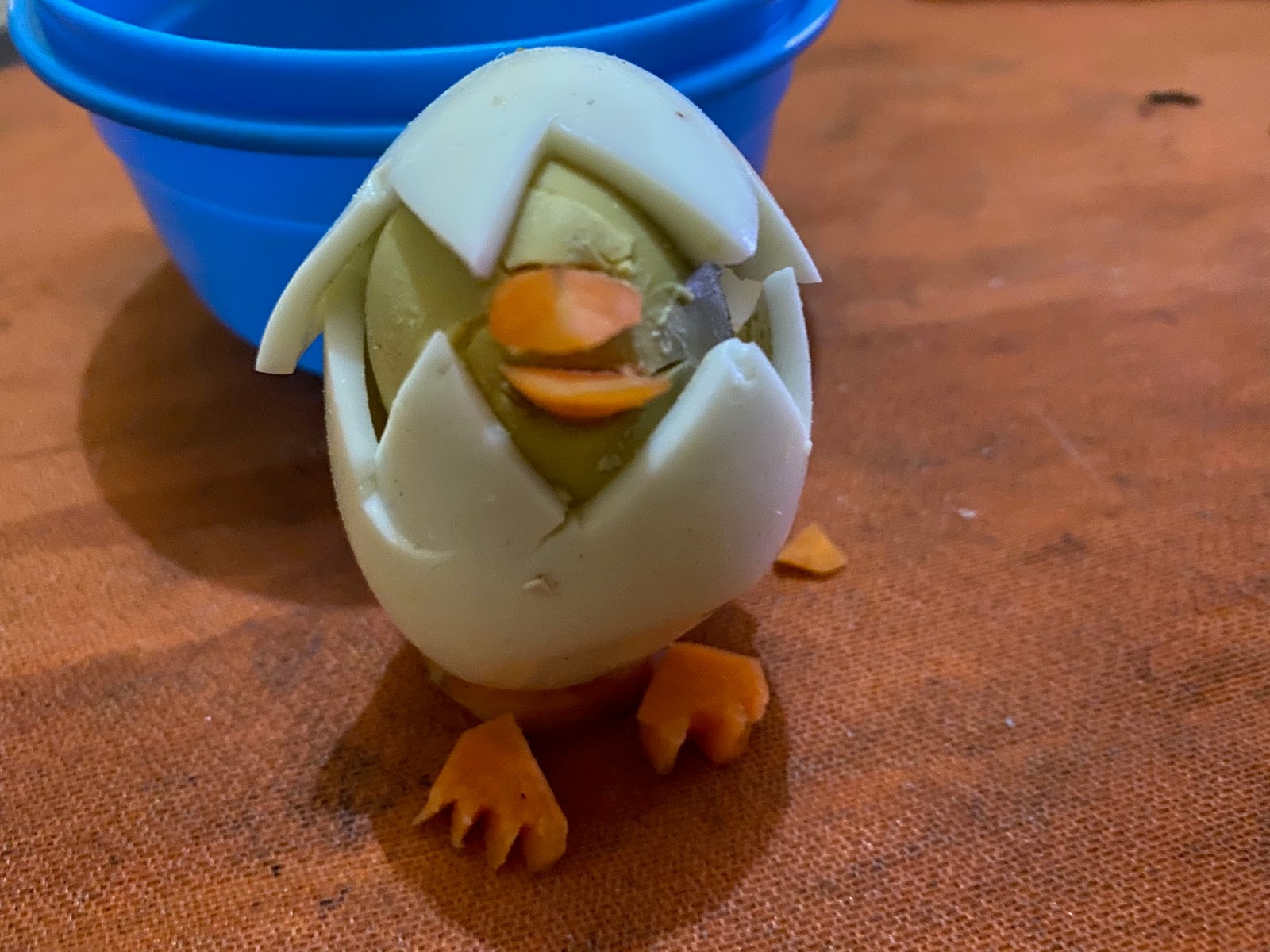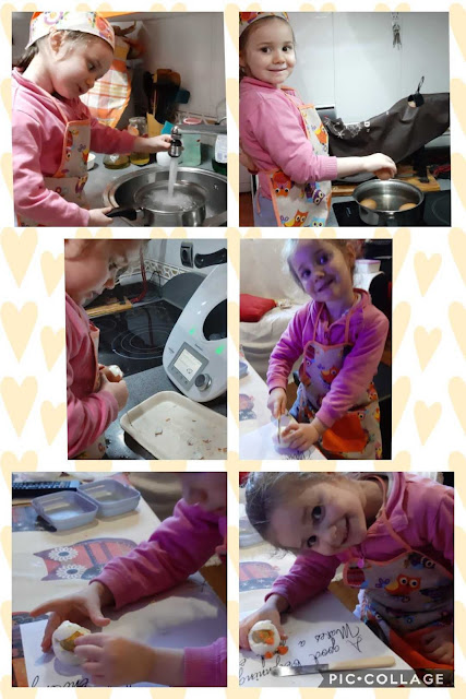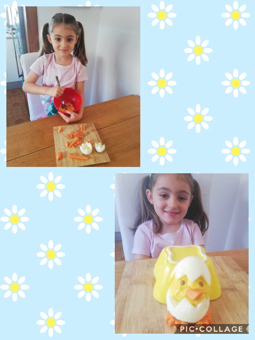 Reto 5: ℝ𝔼ℂ𝔼𝕋𝔸 𝔻𝕀𝕍𝔼ℝ𝕋𝕀𝔻𝔸 «Pollito con huevo cocido». Consiste en elaborar un pollito, siguiendo las instrucciones que os mostramos a continuación.