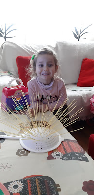 Ana ha superado el reto 2!!!, se ha disfrazado de color rosa y con bonitos complementos también en rosa porque está enamorada de su mamá.
