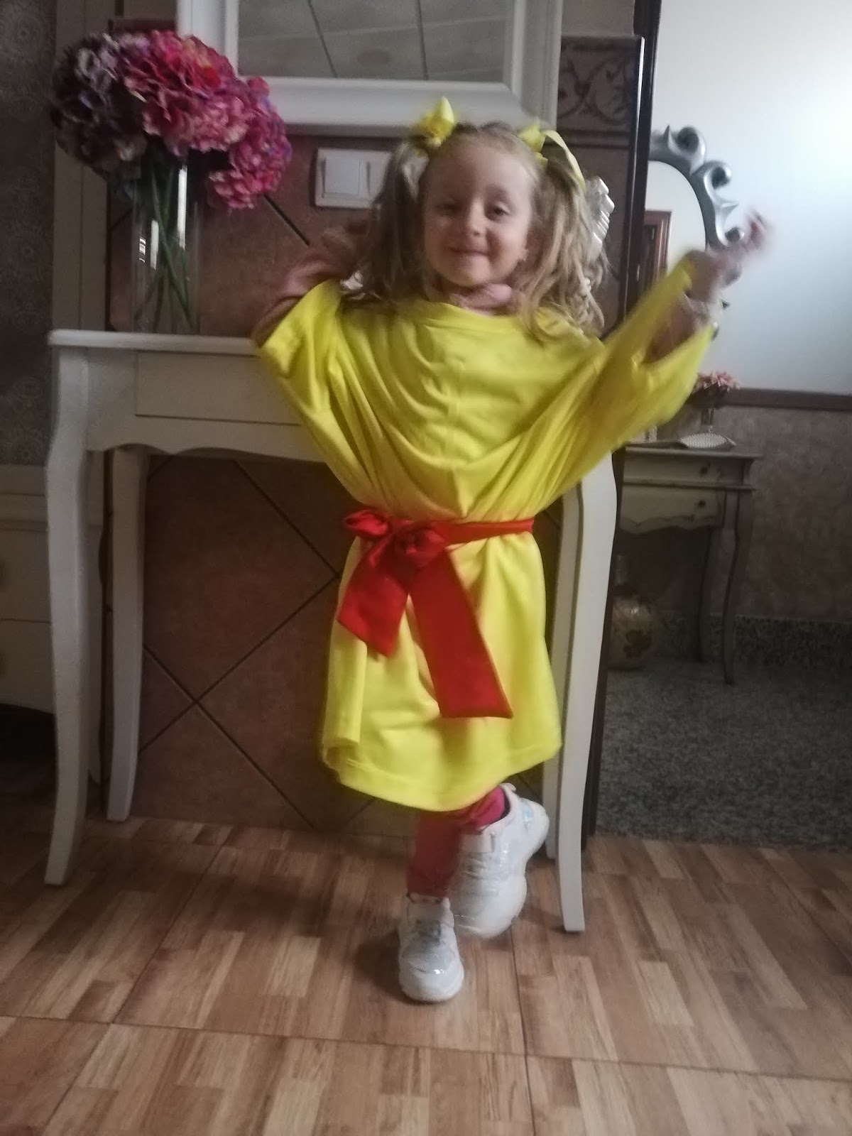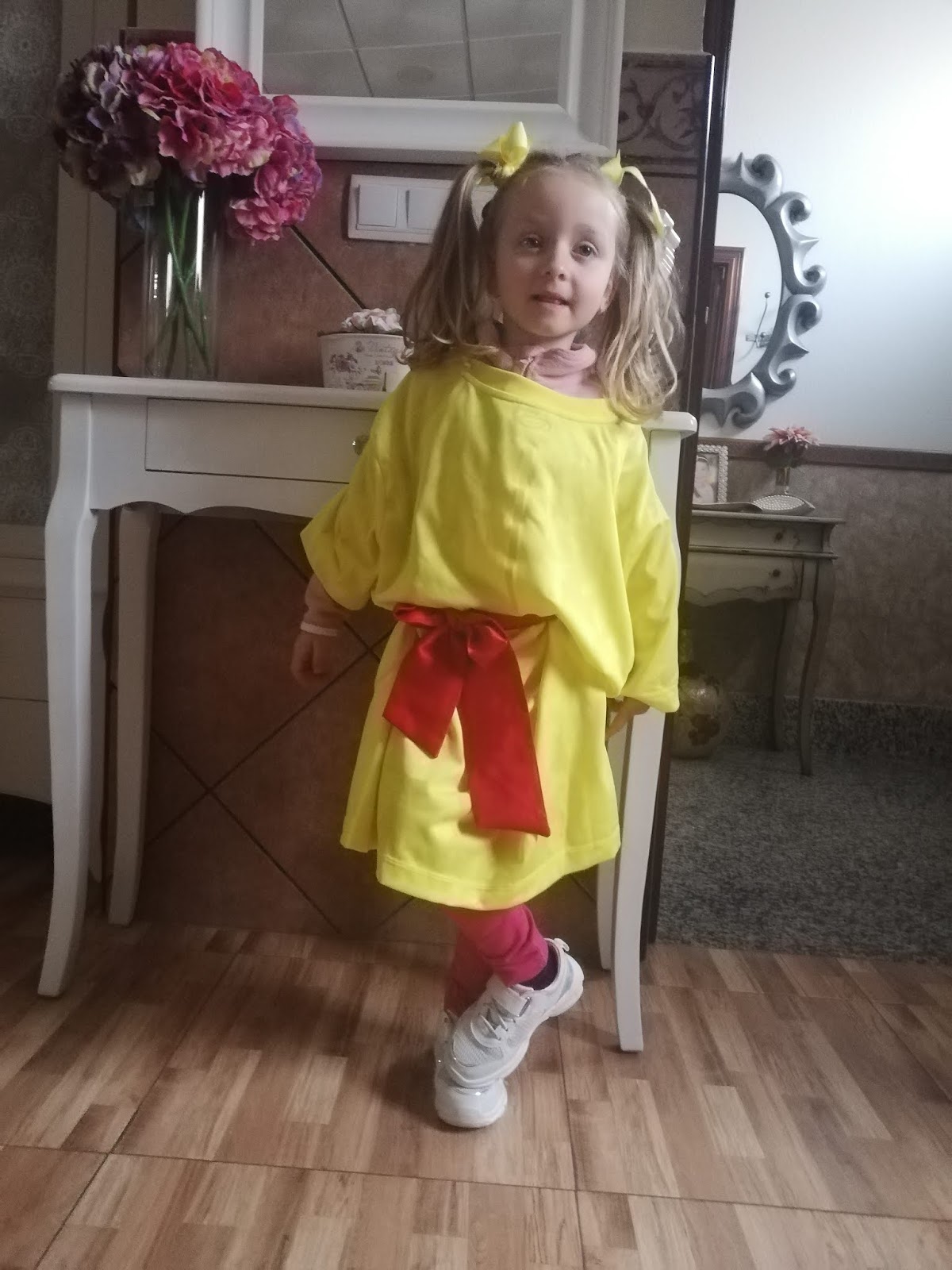 Martina, hoy está muy feliz y contenta así que se ha vestido de color amarillo.