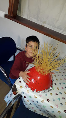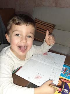 Mateo, hoy se ha levantado muy enfadado y por eso se ha disfrazado de rojo e incluso su cara está roja!!