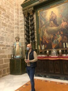 - Nuestro equipo fotografiándose junto a una ventana de la parroquia de San Andrés.