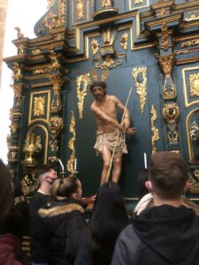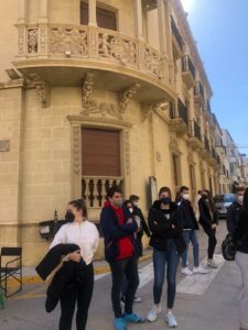 El mes de marzo ha sido un momento muy propicio de incremento de las actividades fuera de nuestro centro. Así, el pasado 23 de marzo se realizó una visita cultural guiada por algunos monumentos y edificios destacados del centro de la localidad. Un grupo de unos 19 alumnos/as de la materia de Historia del Arte de 2º de Bachillerato, acompañados de las profesoras Aitana Aparicio y Teresa Ardoy, visitaron la Iglesia de San Andrés, la Ermita de la Vera Cruz y el Antiguo Casino. Se contó con la colaboración de nuevo de Diego Jiménez, que sirvió de guía, así de la Familia Medina González o del párroco Bartolomé López que facilitaron el acceso y la visita a dichos momumentos y edficios, algunos de ellos privados.