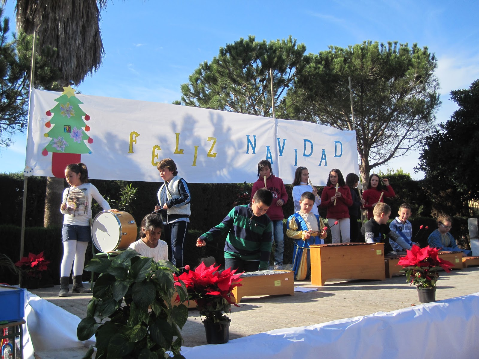 A las 11:30 les abrieron las puertas a los padres,madres,tíos,tías,abuelos,abuelas y muchas personas más.Cuando todos estaban sentados aparecieron los presentadores: Patricia y Fernando de cuarto.Se empezó por dos teatros, uno de cuarto y otro sexto. Después los más peques del cole cantaron villancicos,los niños y niñas de primero cantaron dos canciones.Luego siguieron el resto de actuaciones y canciones.