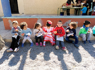Desde el colegio se optó por honrar el sentimiento andaluz, primero izando tanto la bandera de Andalucía, como la de Roquetas y España, y después tomándonos uno de los desayunos mas Andaluces posibles, pan con tomate y aceite.